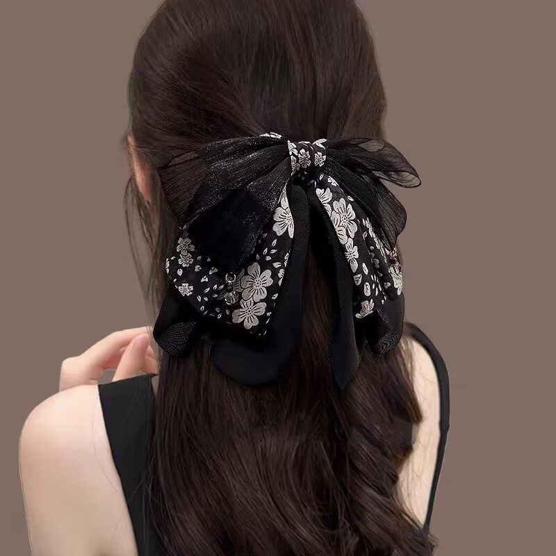 53# floral bow ponytail clip