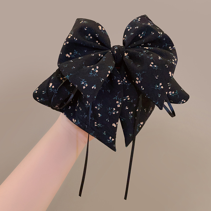 1# black + floral ponytail clip