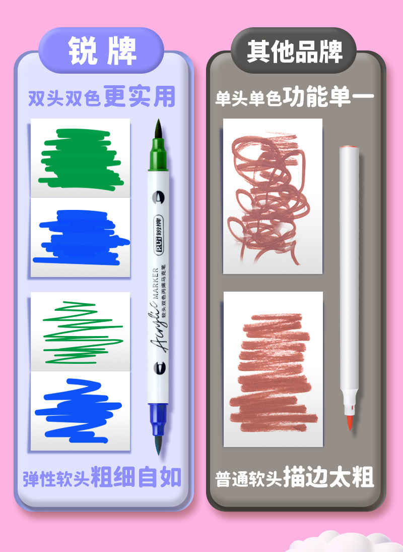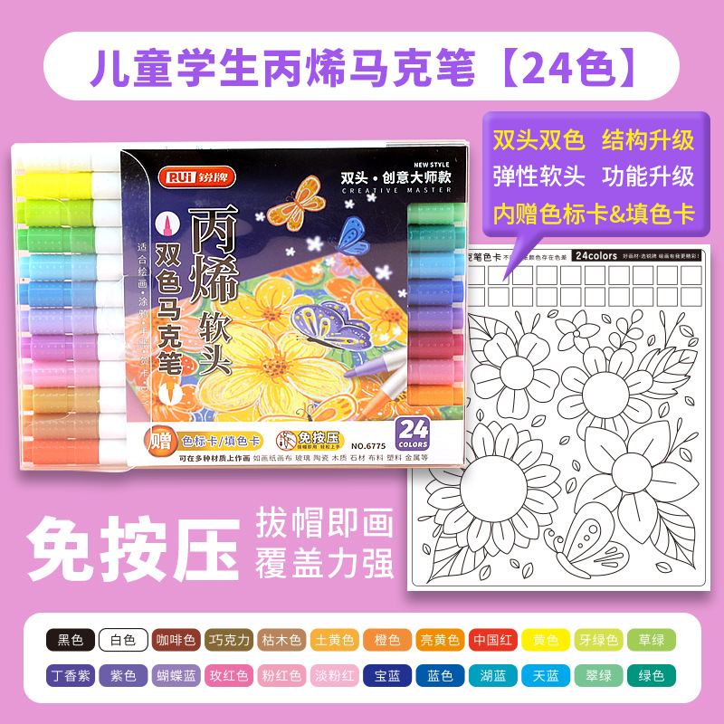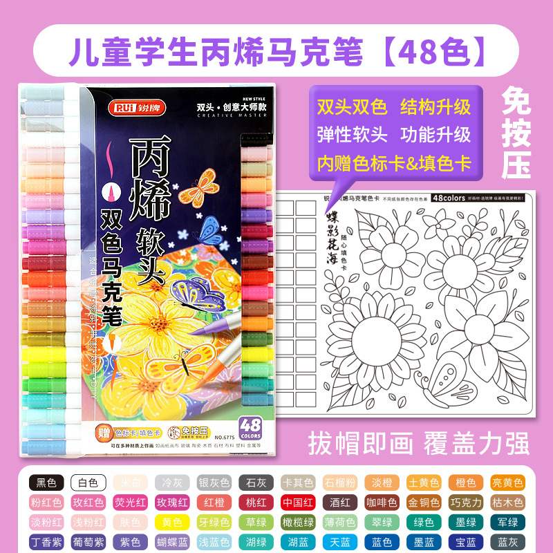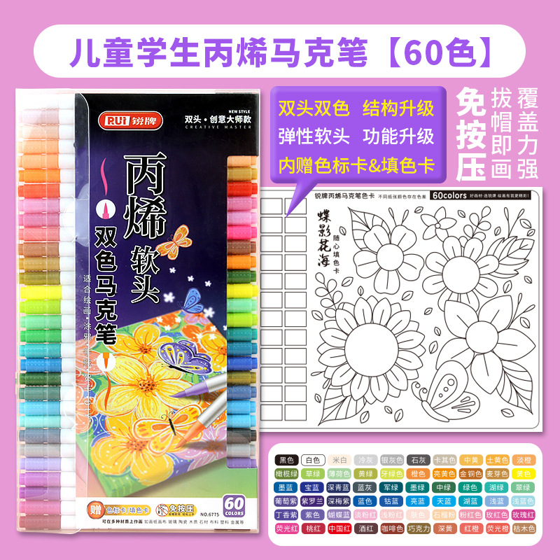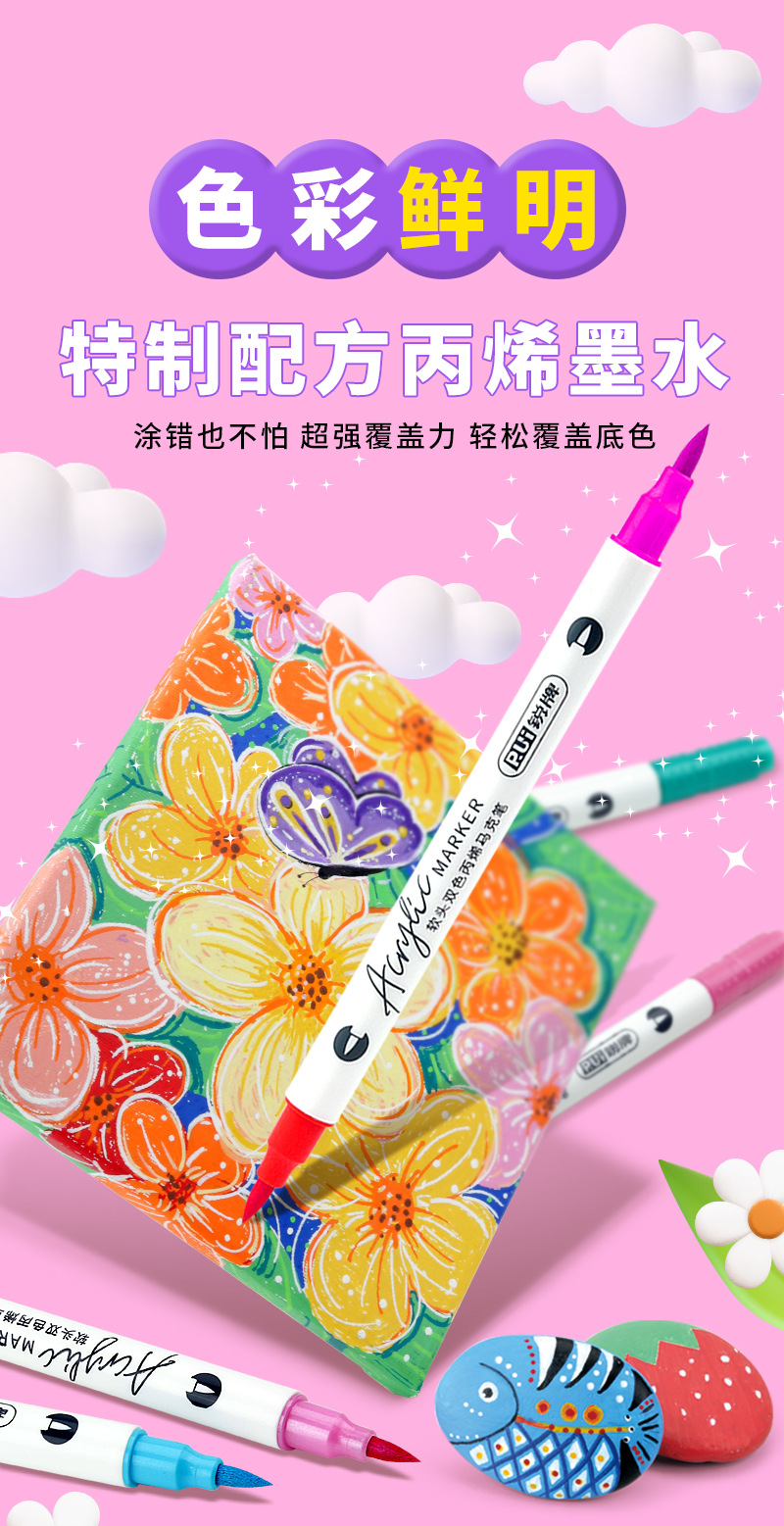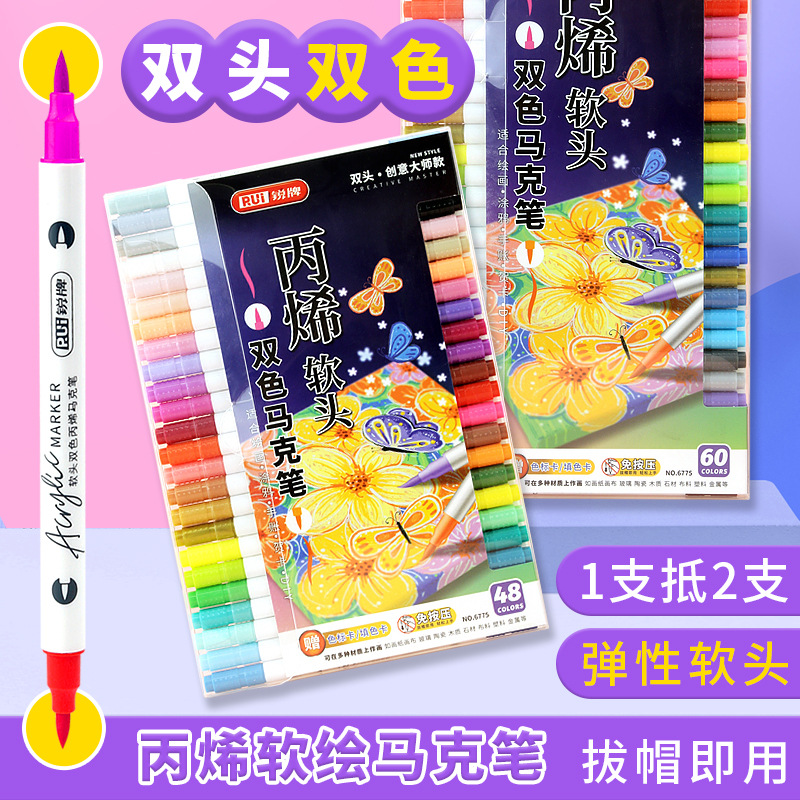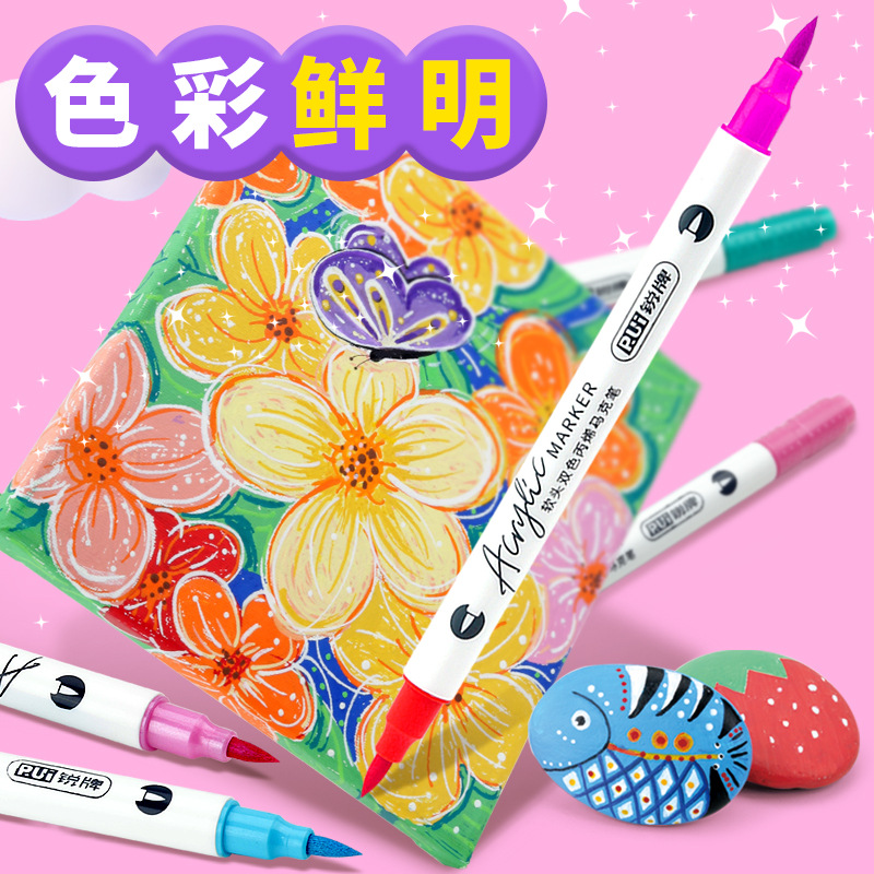 double-headed, two-color children's doodling hand account diy creative marker pen acrylic soft-paint marker pen student art tools