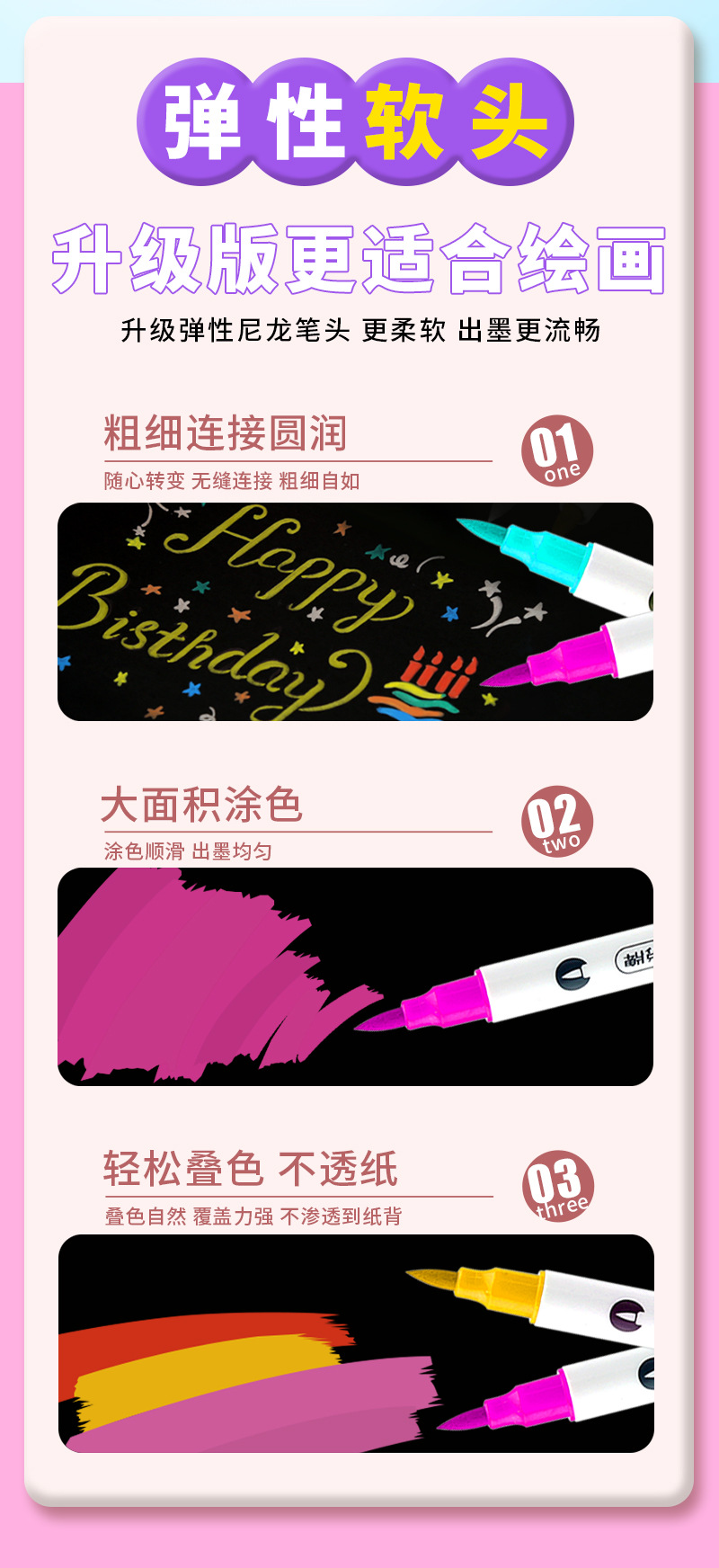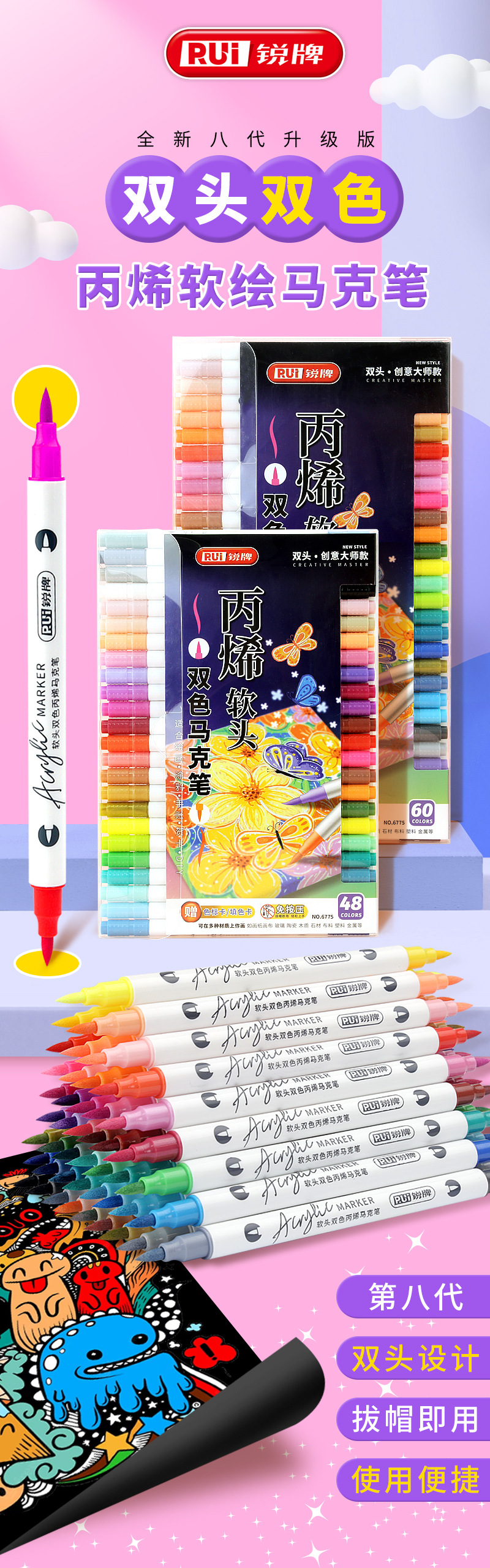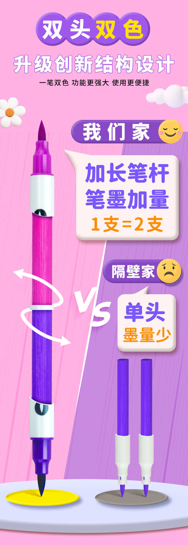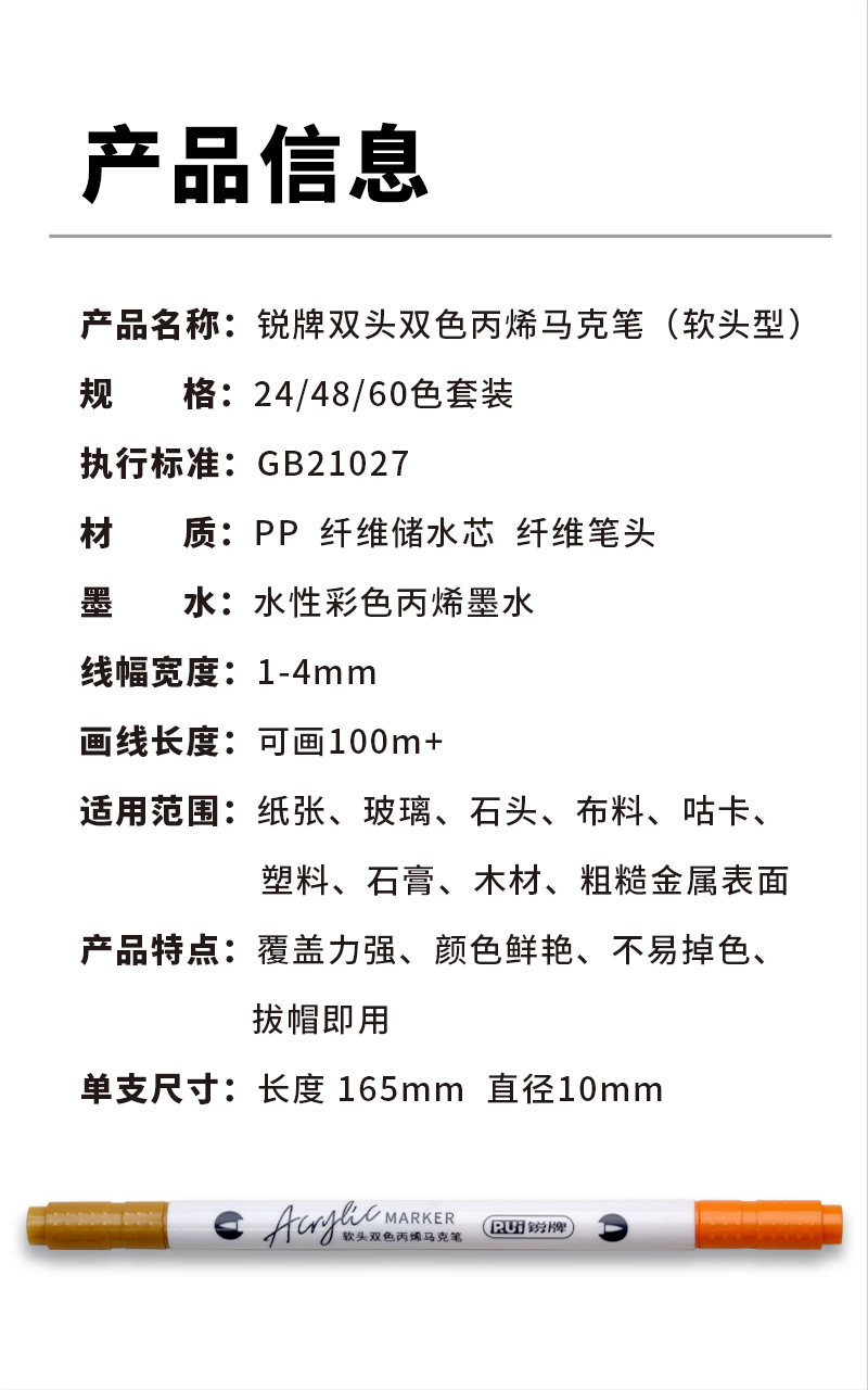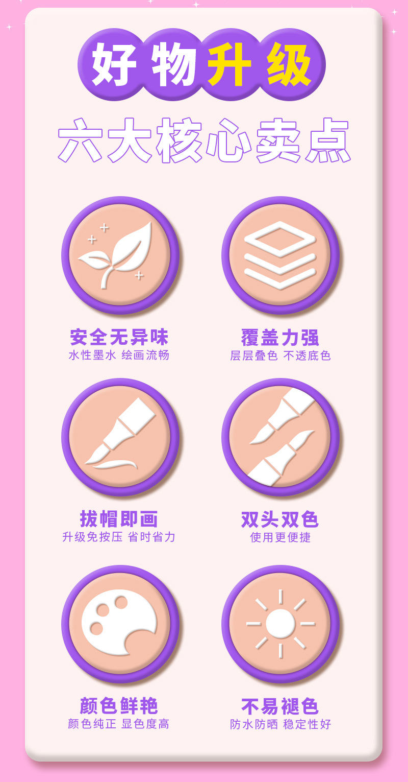 double-headed, two-color children's doodling hand account diy creative marker pen acrylic soft-paint marker pen student art tools