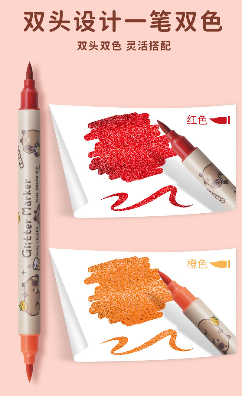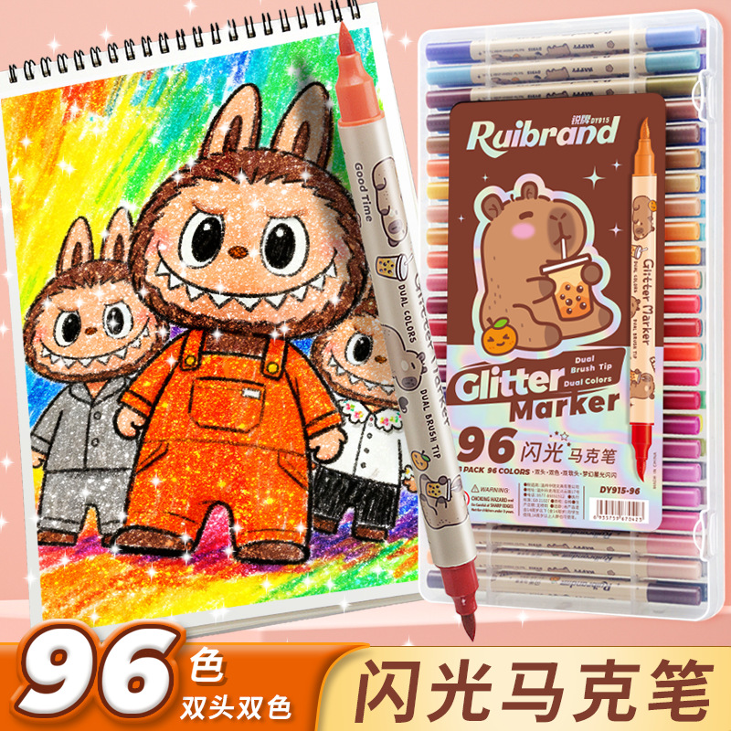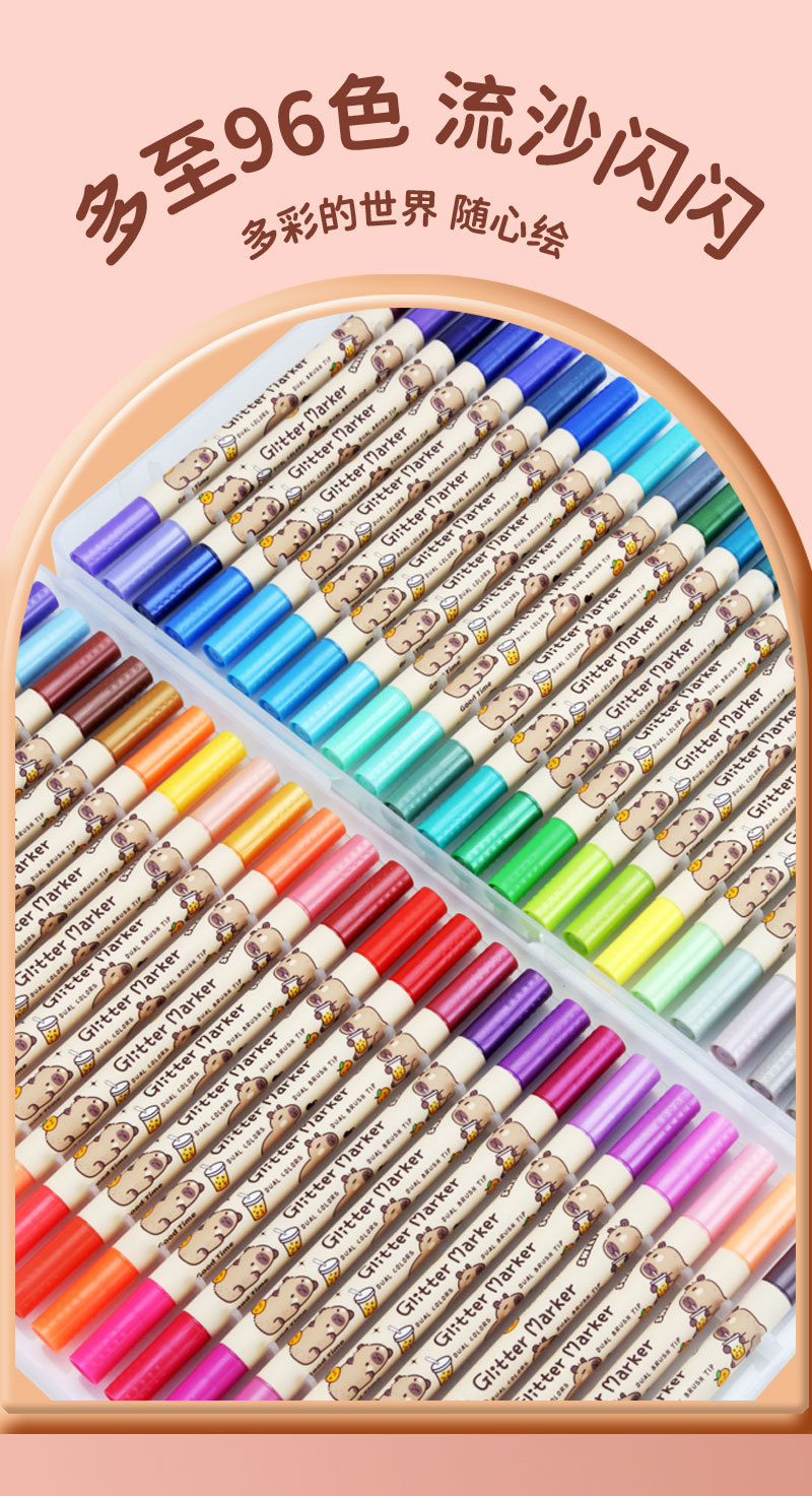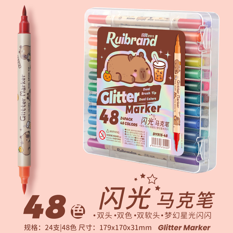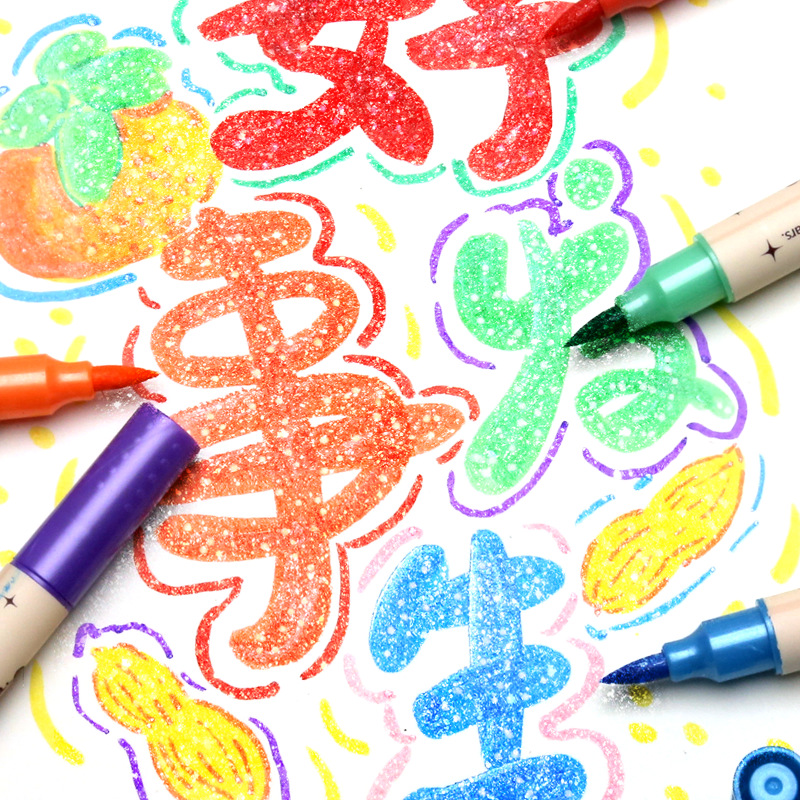 only for pupils' journal pen, soft-tip thin and glittering marker pen, flowing light shimmering powder watercolor pen, pearly thin and glittering drawing crayons.