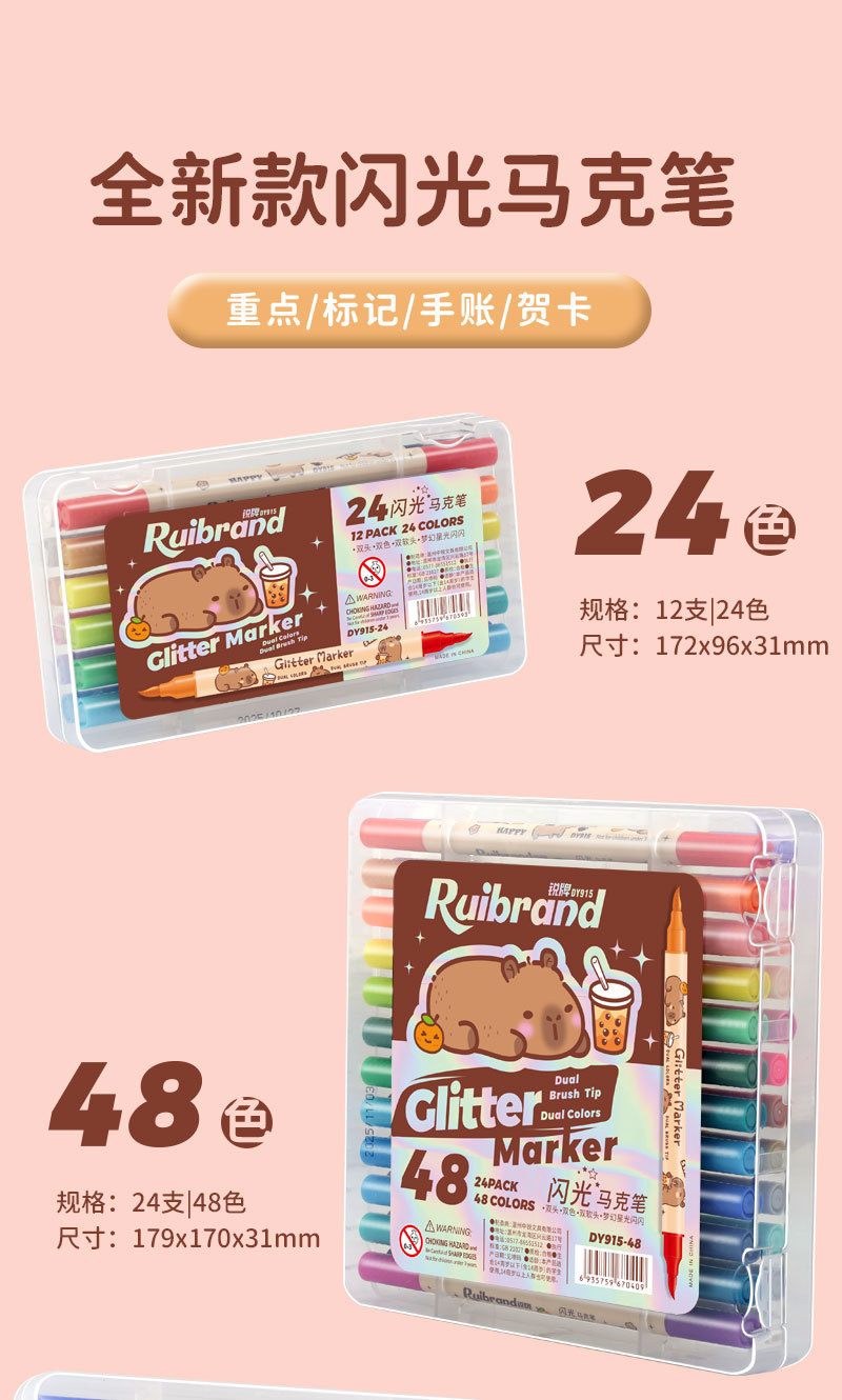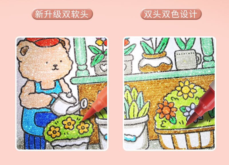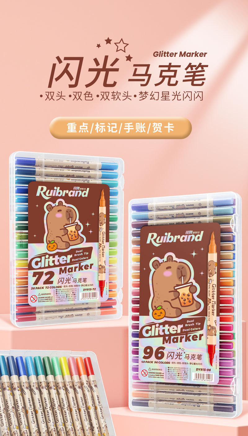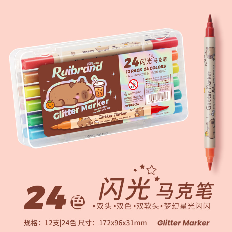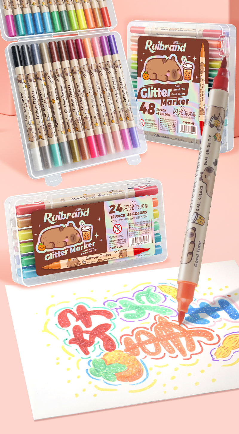 only for pupils' journal pen, soft-tip thin and glittering marker pen, flowing light shimmering powder watercolor pen, pearly thin and glittering drawing crayons.