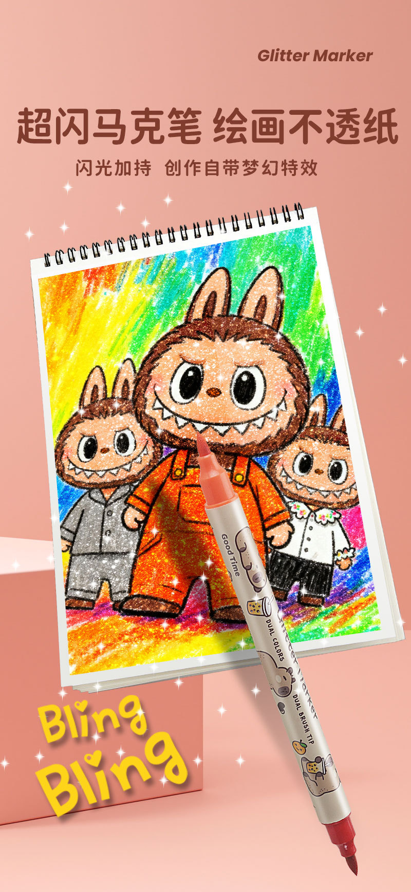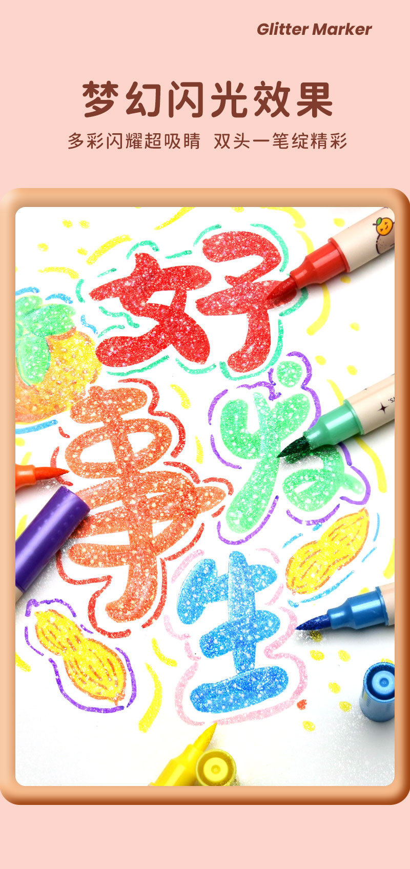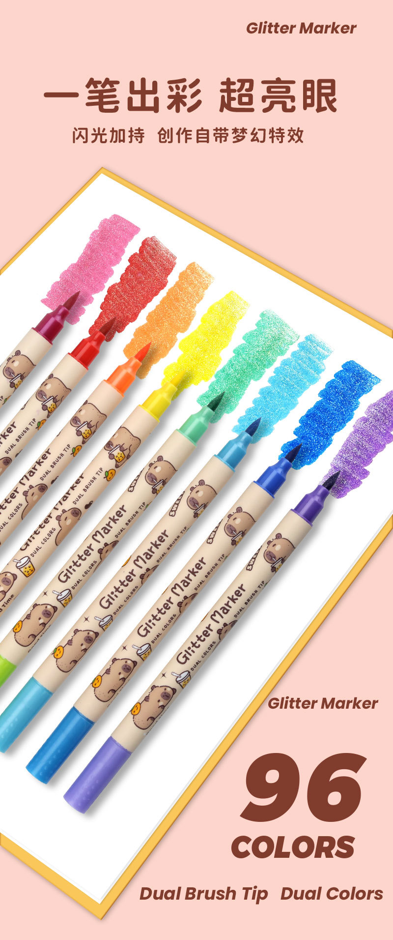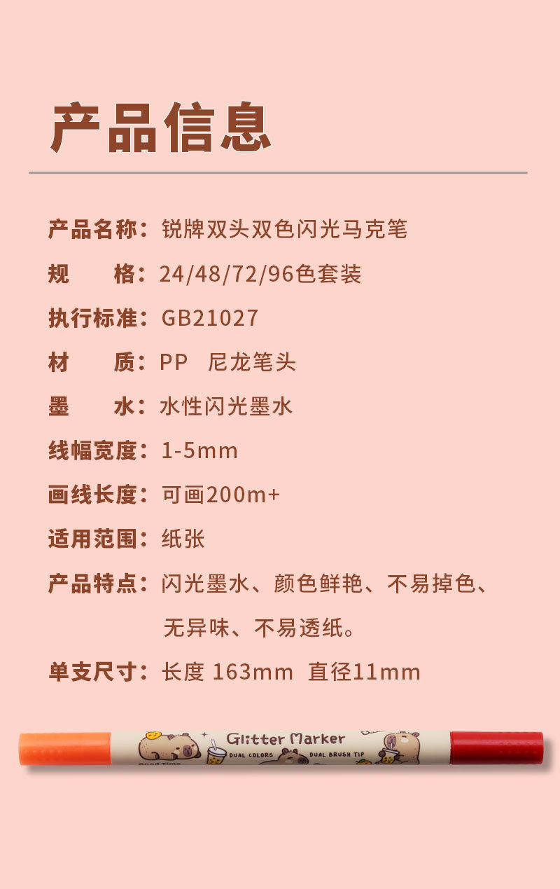 only for pupils' journal pen, soft-tip thin and glittering marker pen, flowing light shimmering powder watercolor pen, pearly thin and glittering drawing crayons.