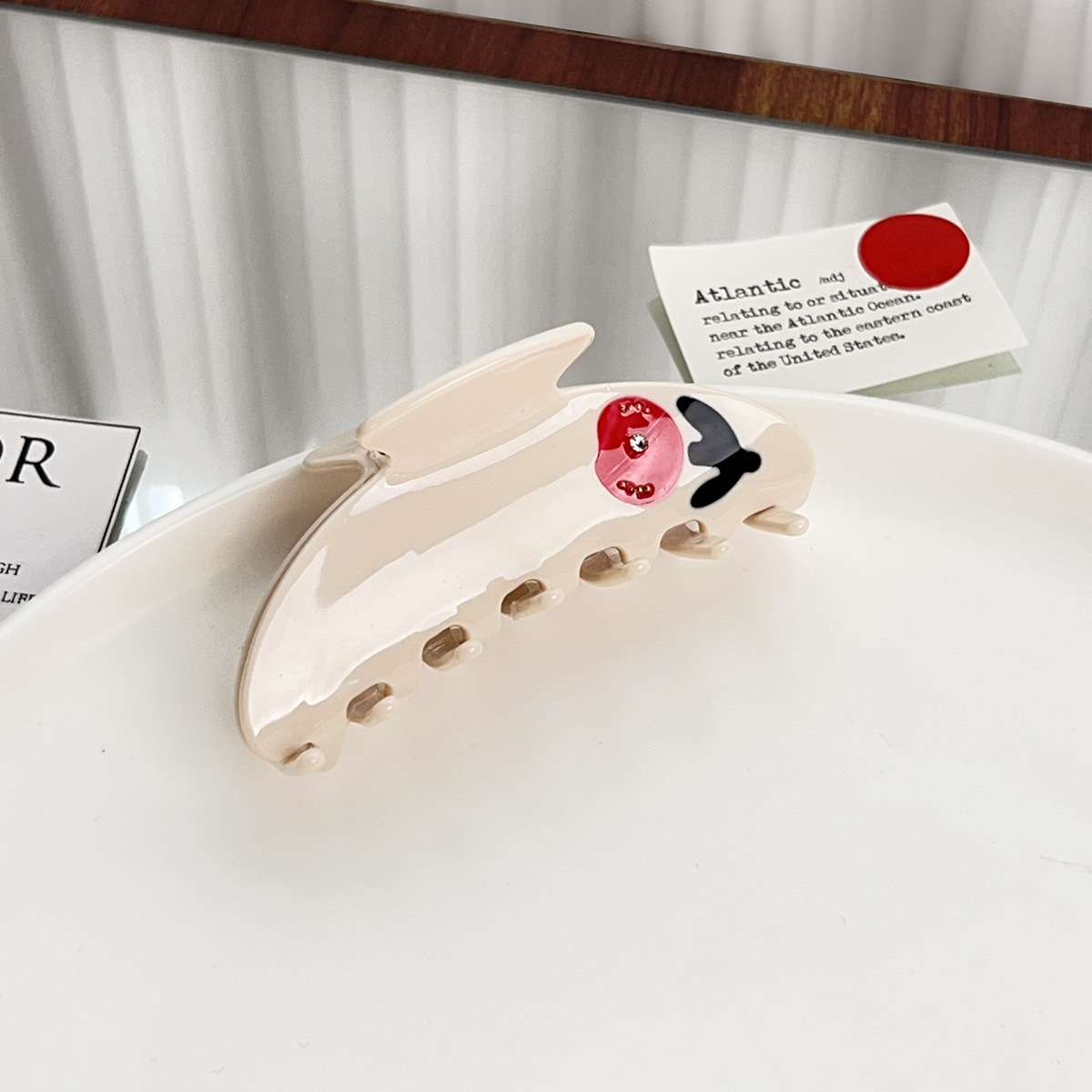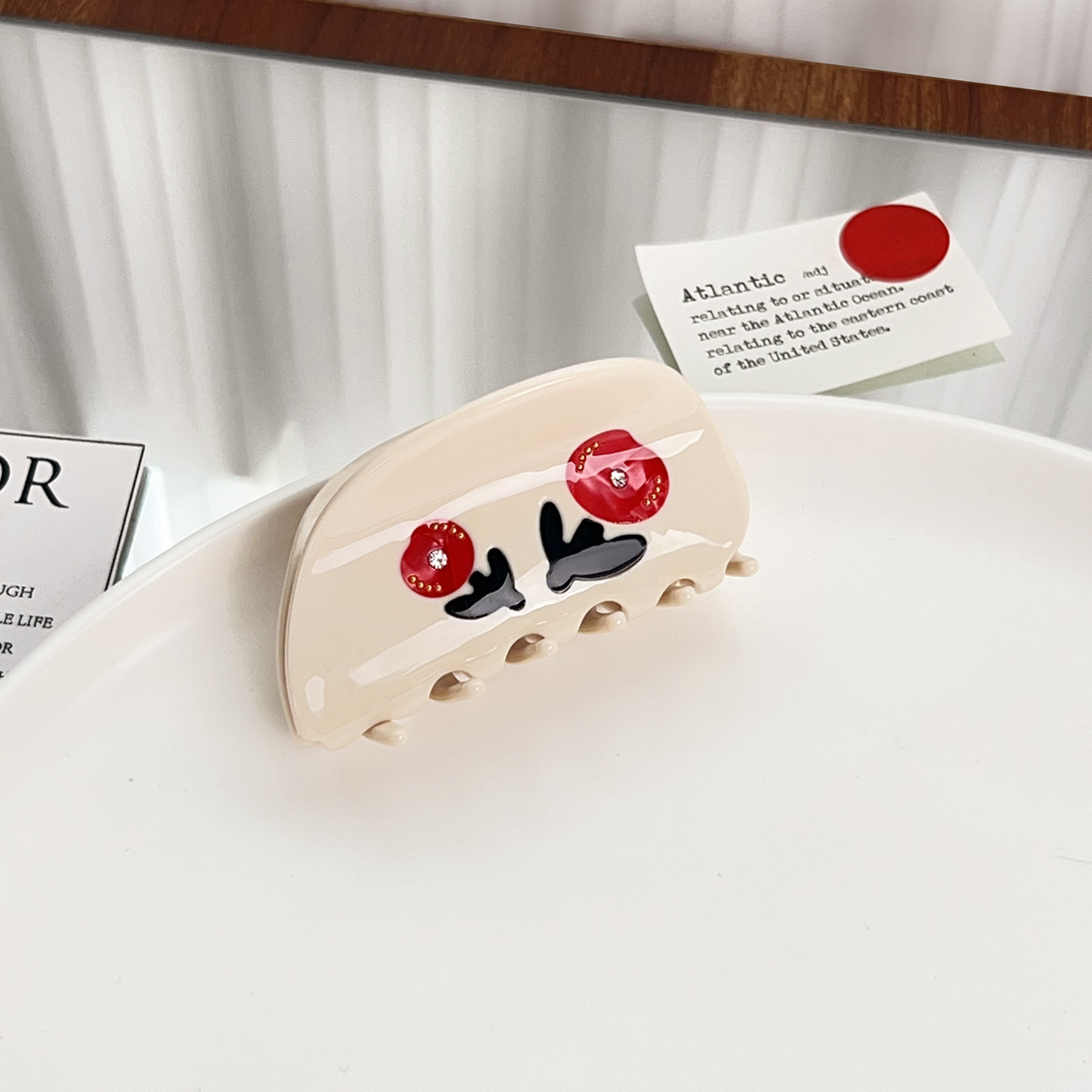 a crescent moon, a flower.