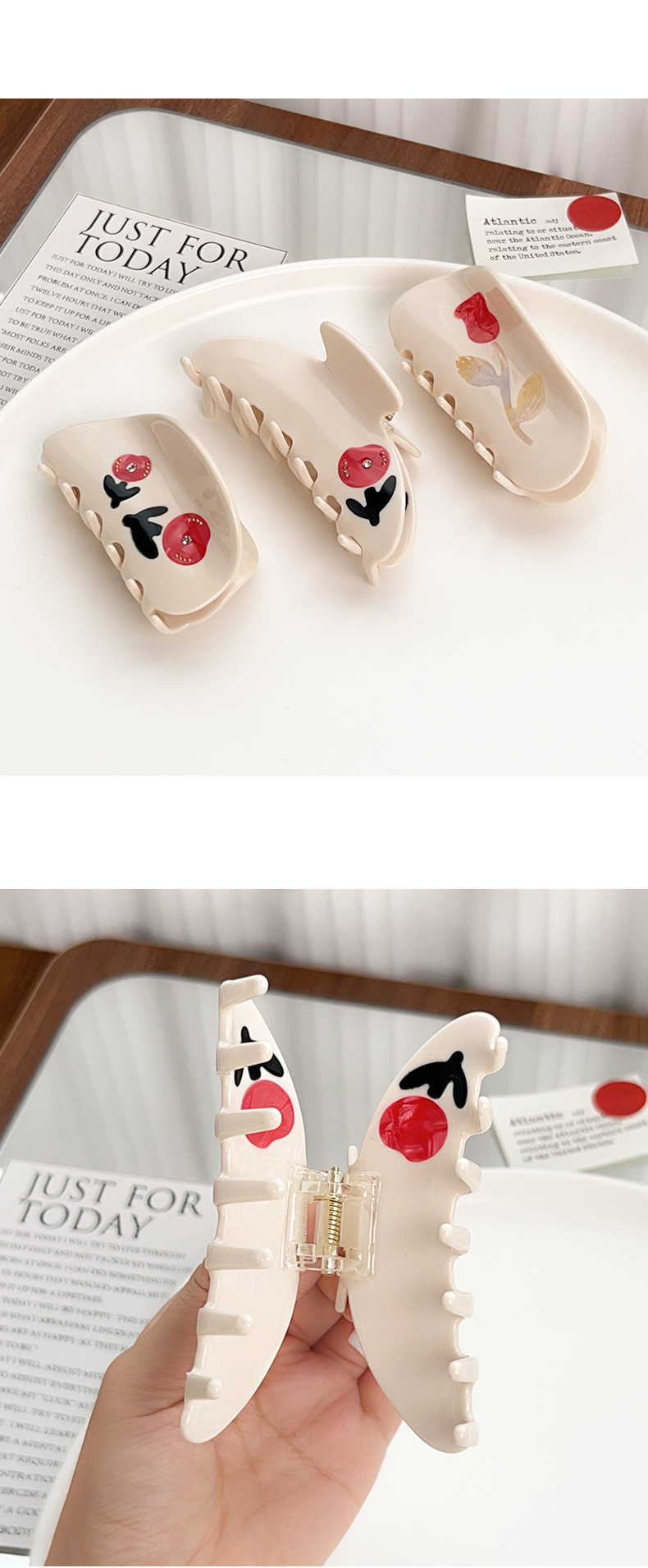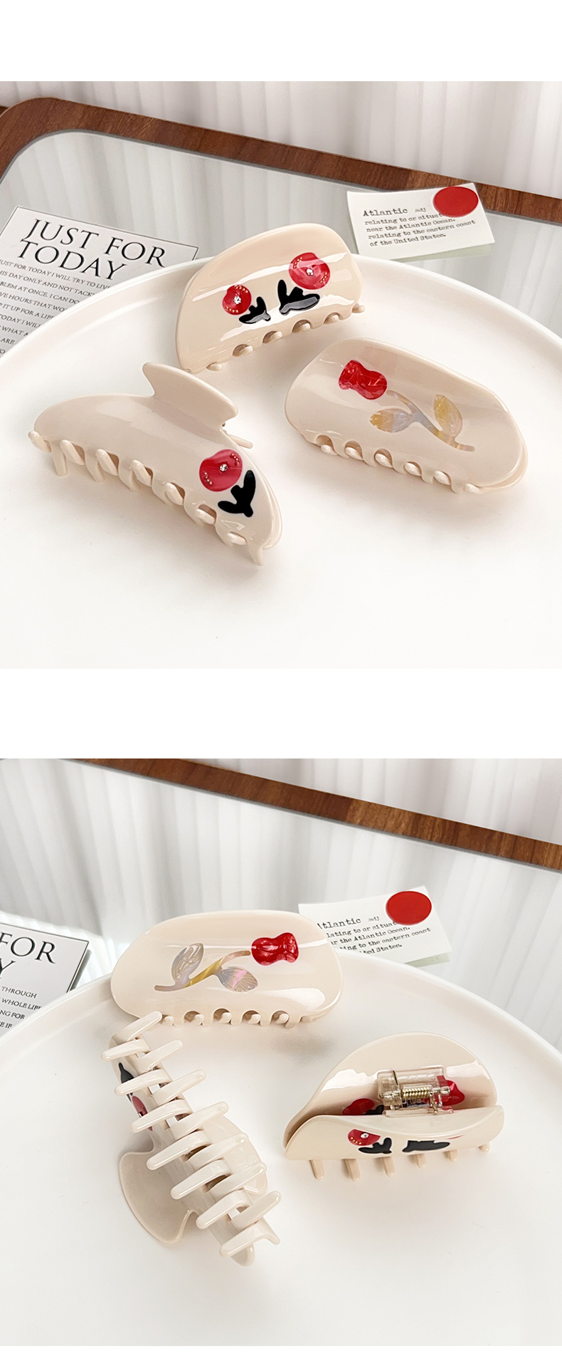 two flowers in a semicircle