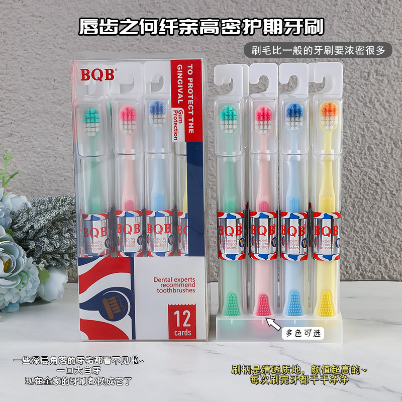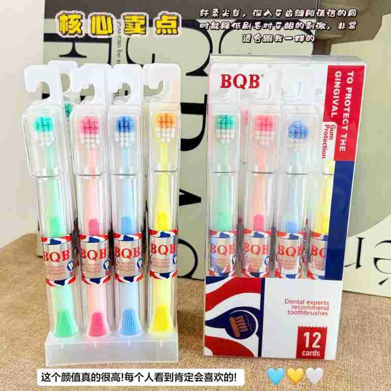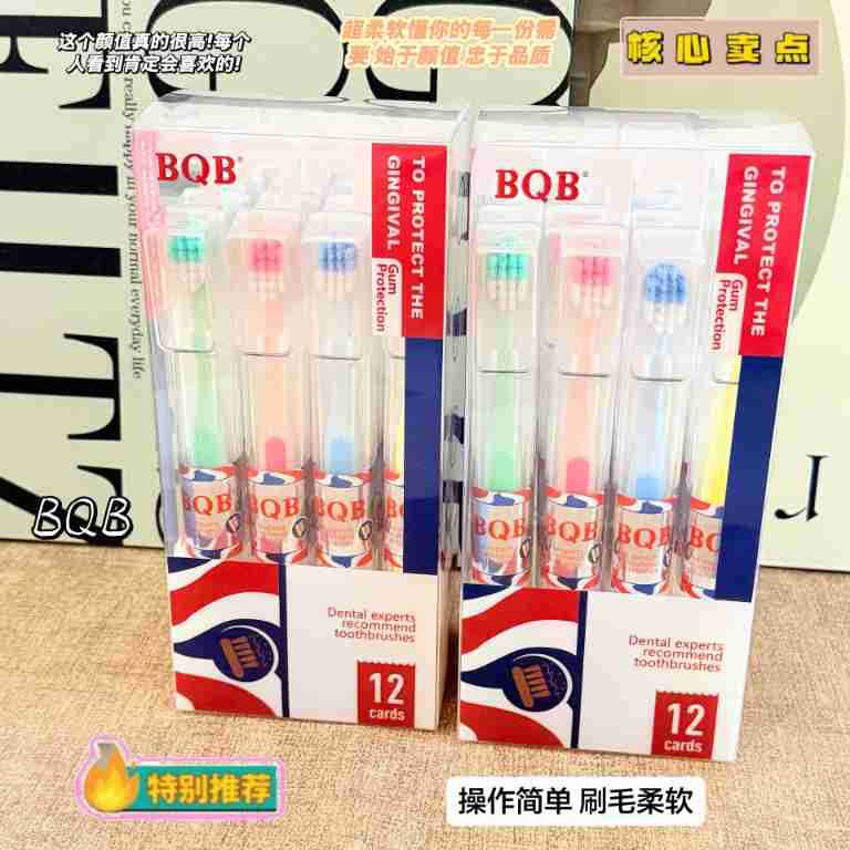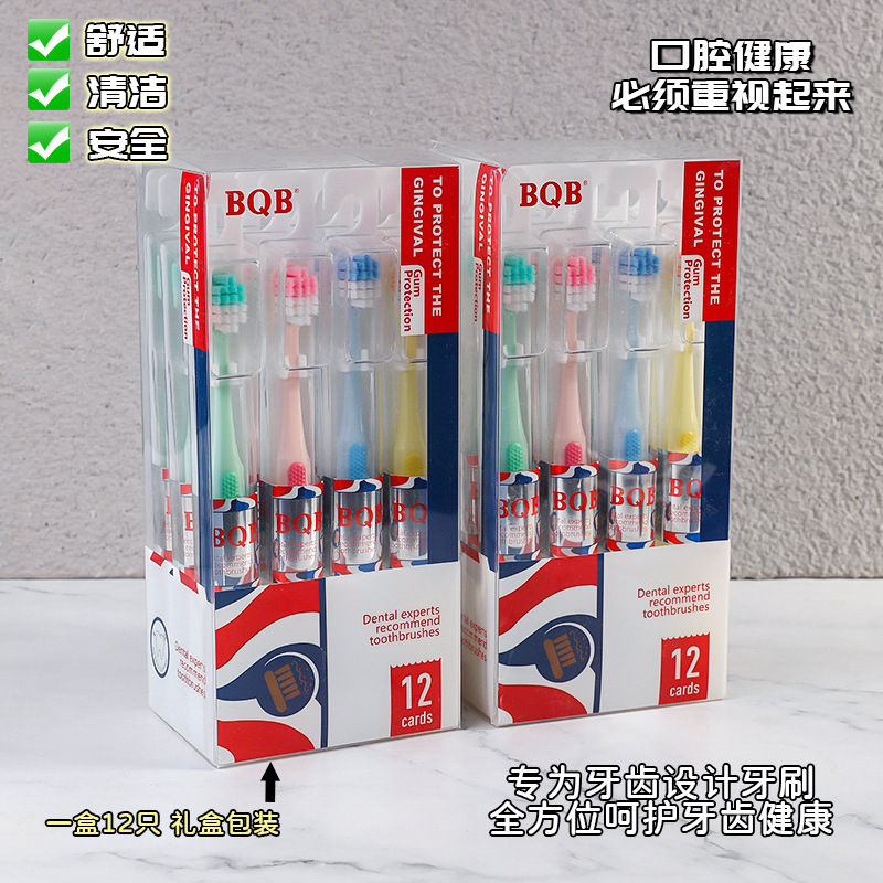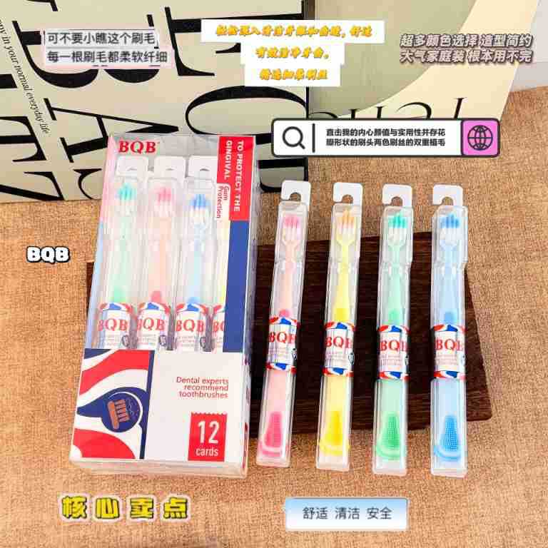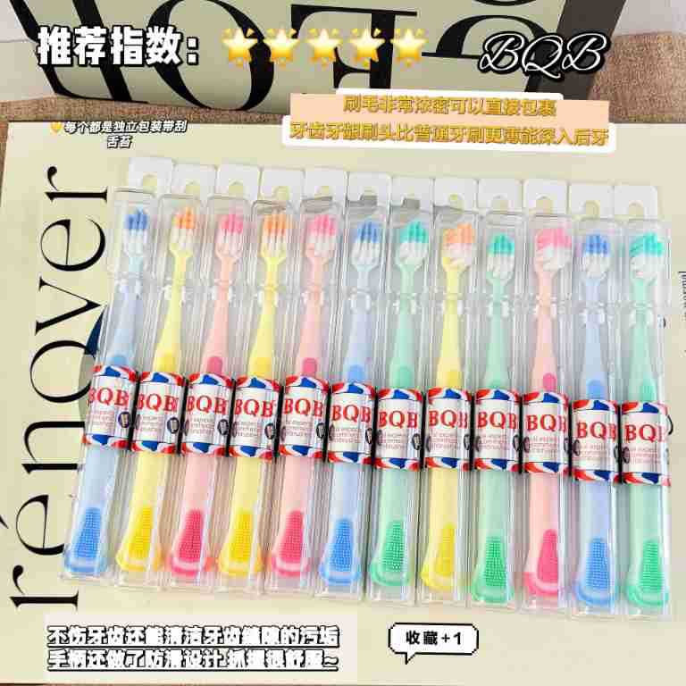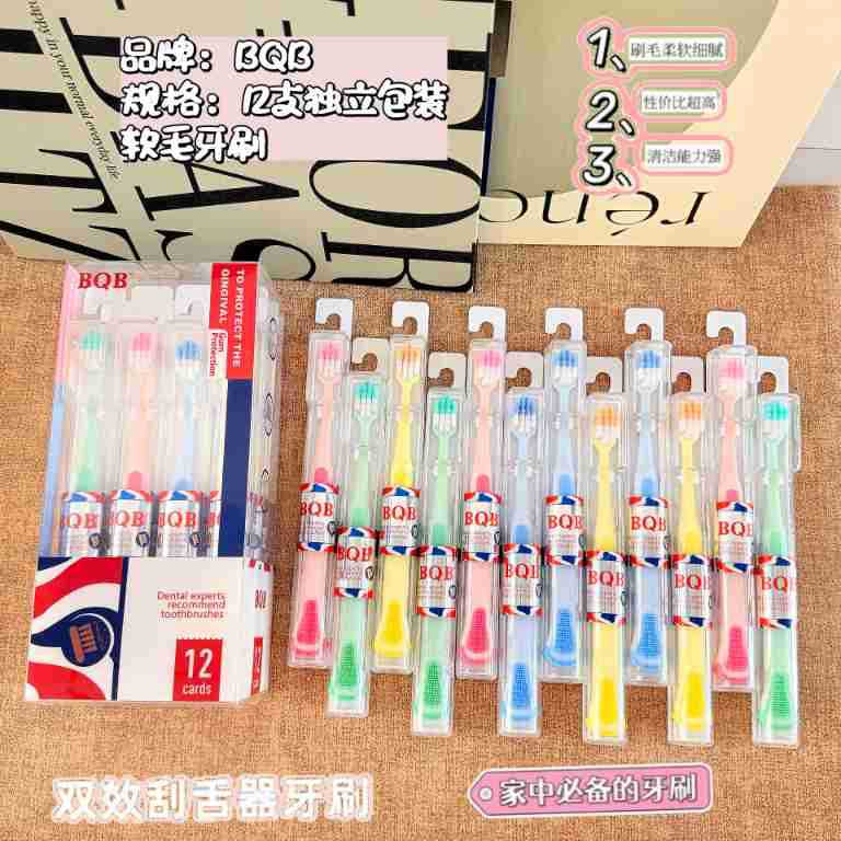 bqb foreign trade export english packaging private domain live broadcast popular 12 pcs boxed tongue scraping cross-border e-commerce toothbrush