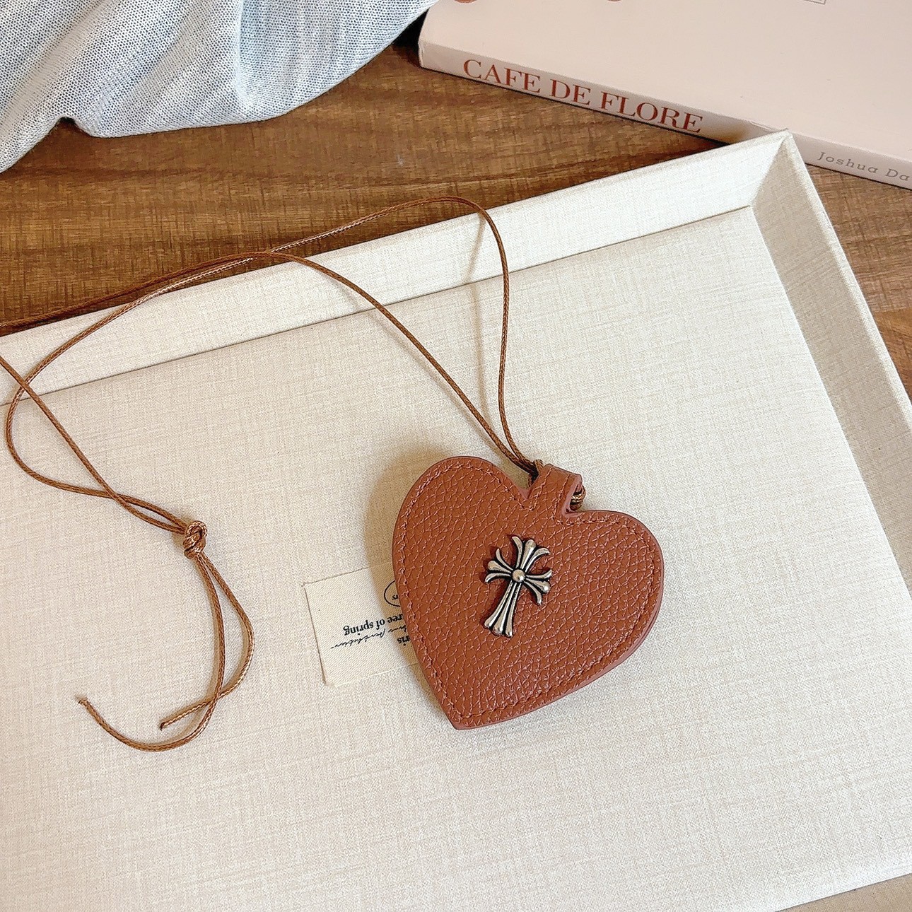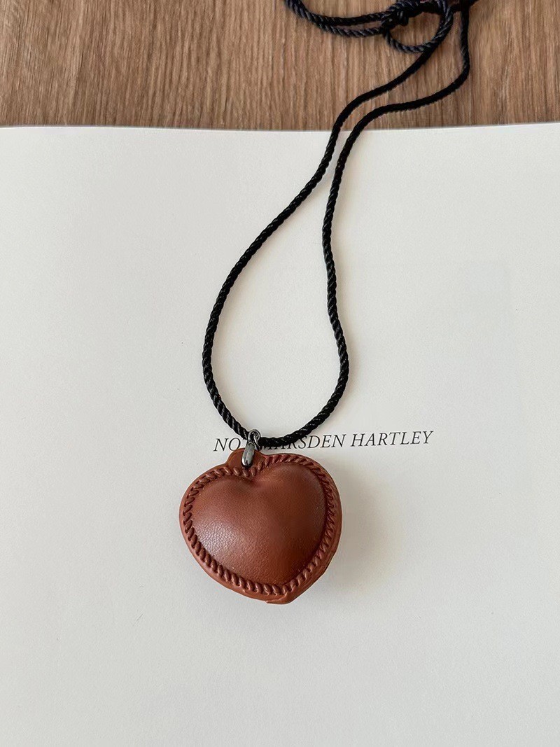coffee-colored leather heart necklace