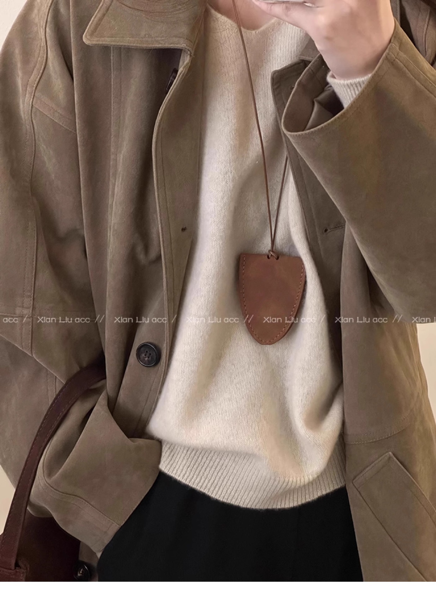 off-white leather magnetic glasses clip necklace