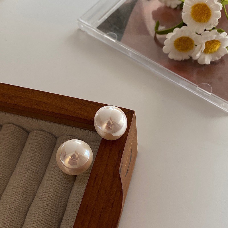 14mm steamed bun pearl earrings-silver needle