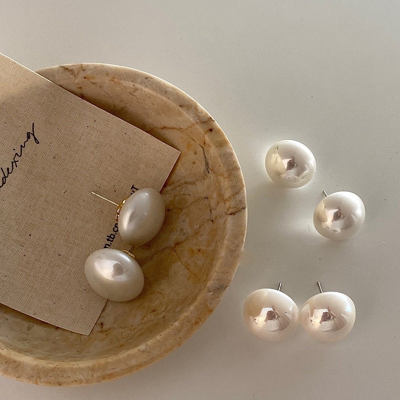 8mm steamed bun pearl earrings-silver needle