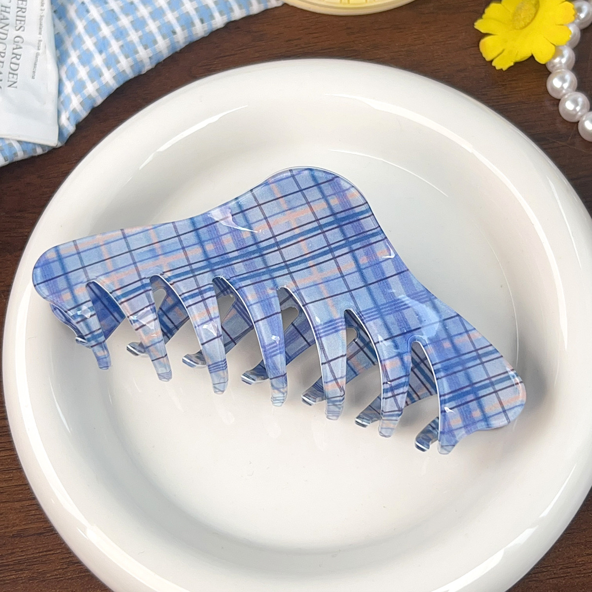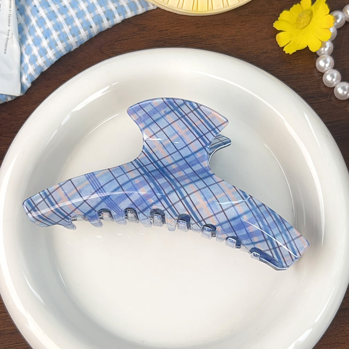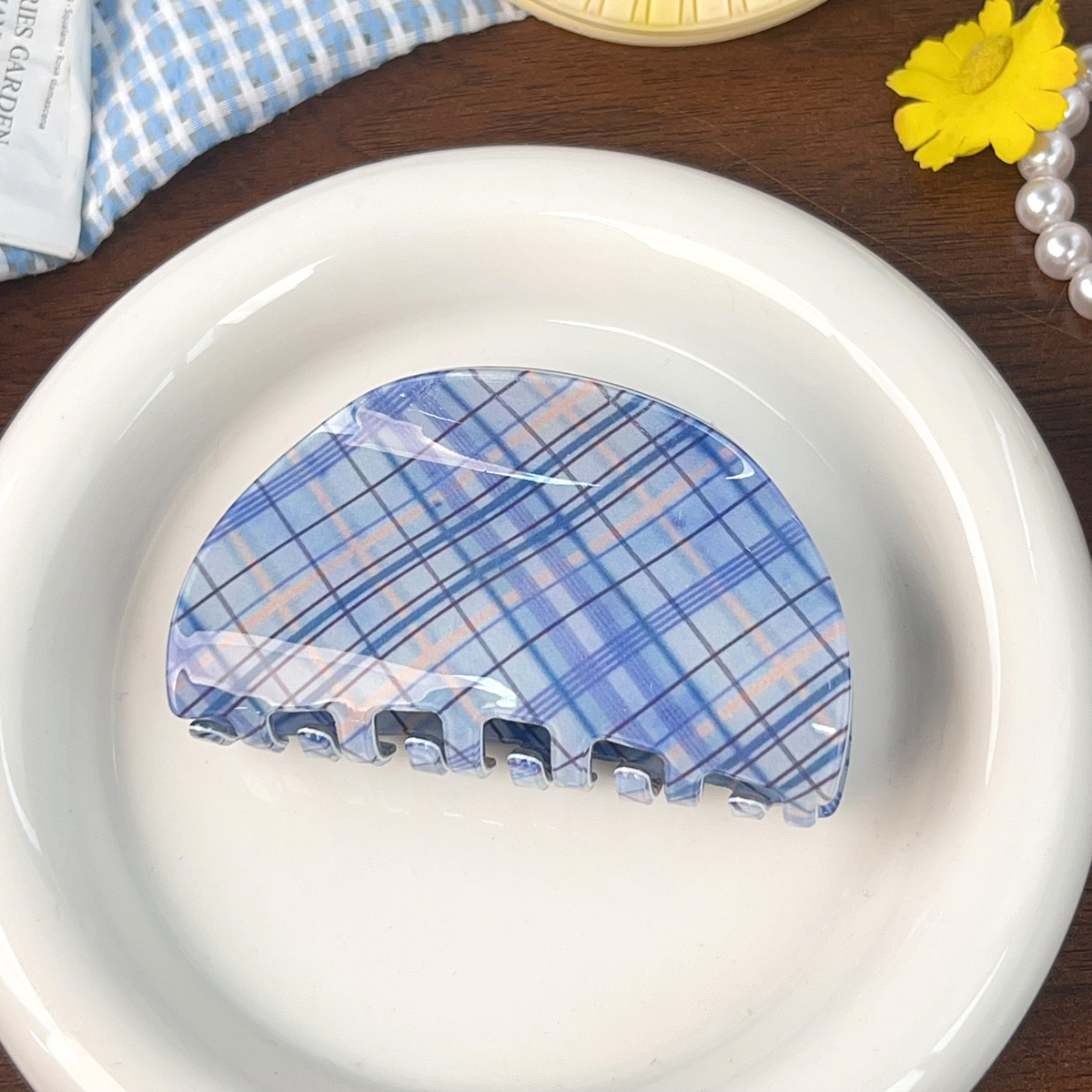 blue plaid semicircle