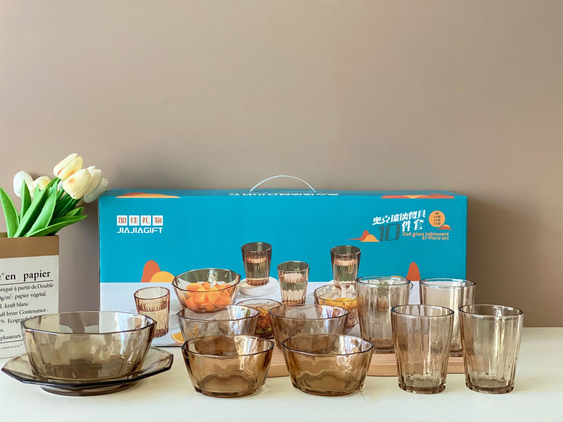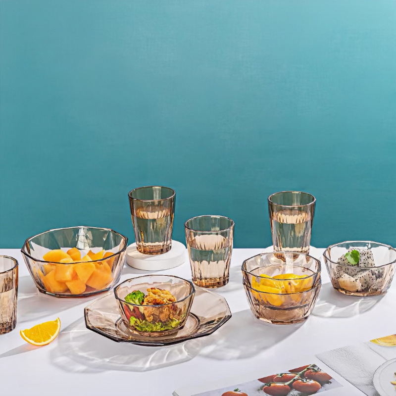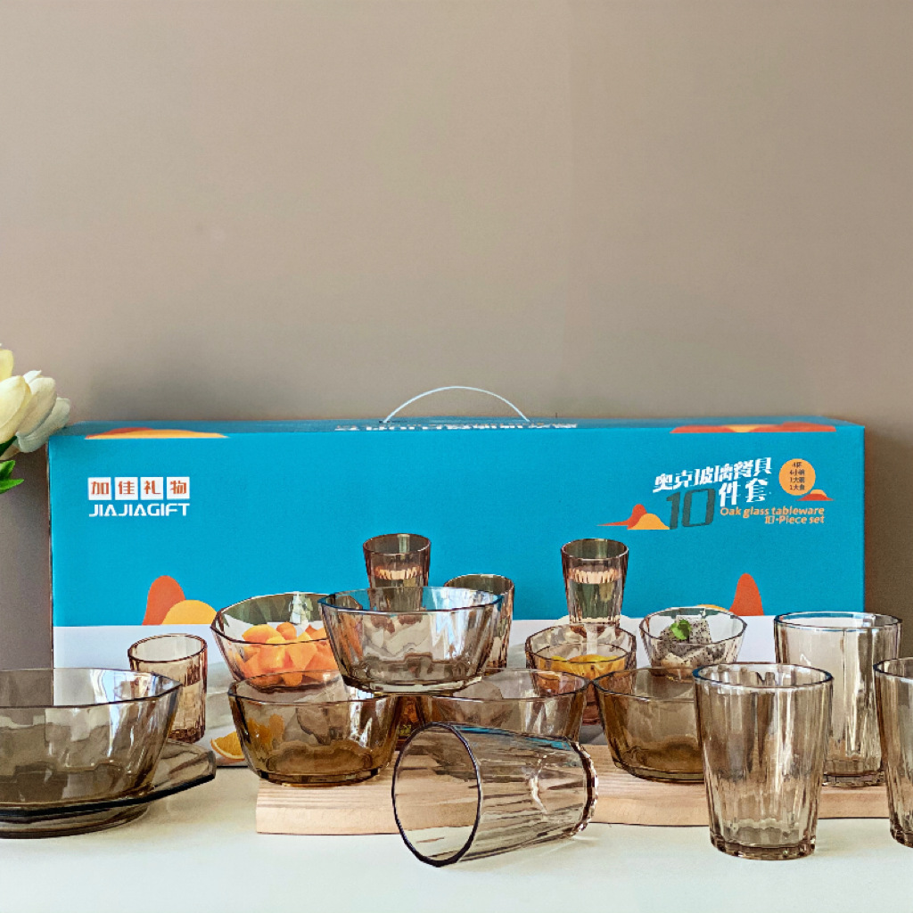 High-quality and high-end tea-colored glass bowl set of 10 pieces, crystal clear, both for gift-giving and personal use, very high-level, simple and elegant, with excellent texture.
