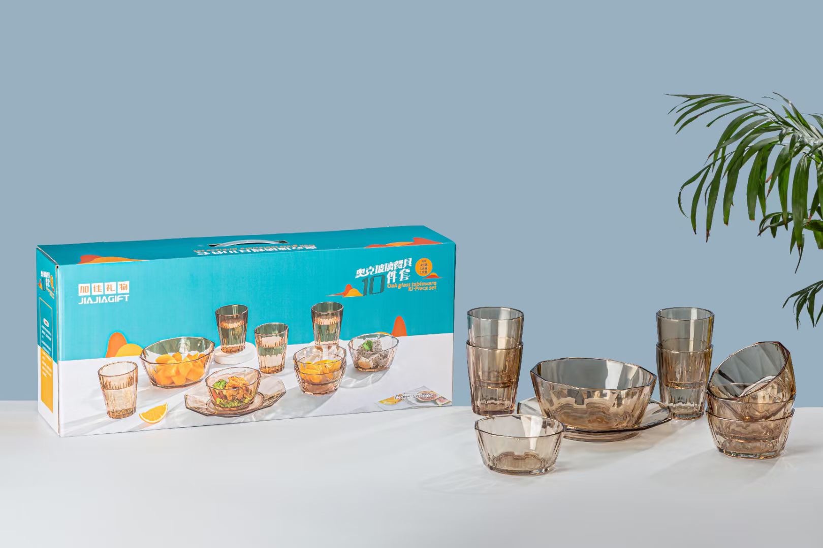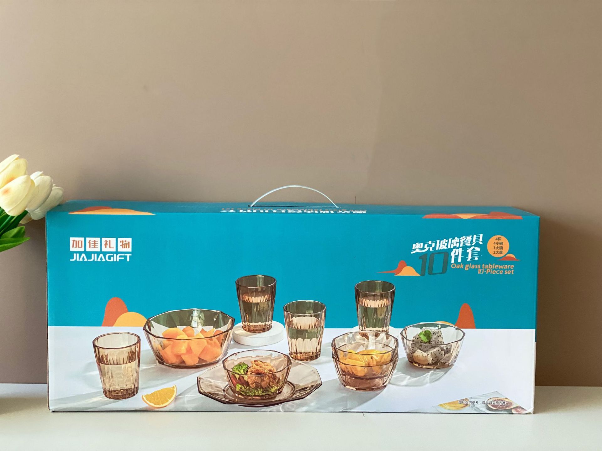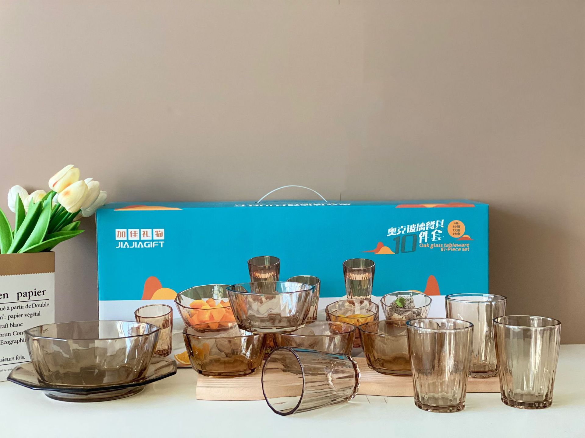 High-quality and high-end tea-colored glass bowl set of 10 pieces, crystal clear, both for gift-giving and personal use, very high-level, simple and elegant, with excellent texture.