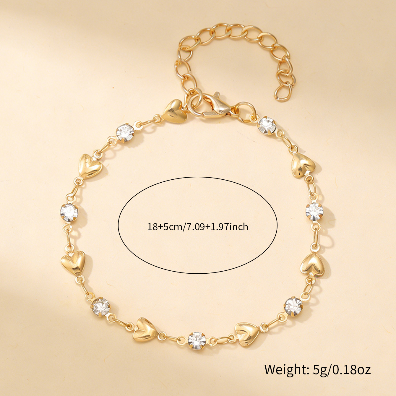 1 piece solid heart bracelet-gold color
