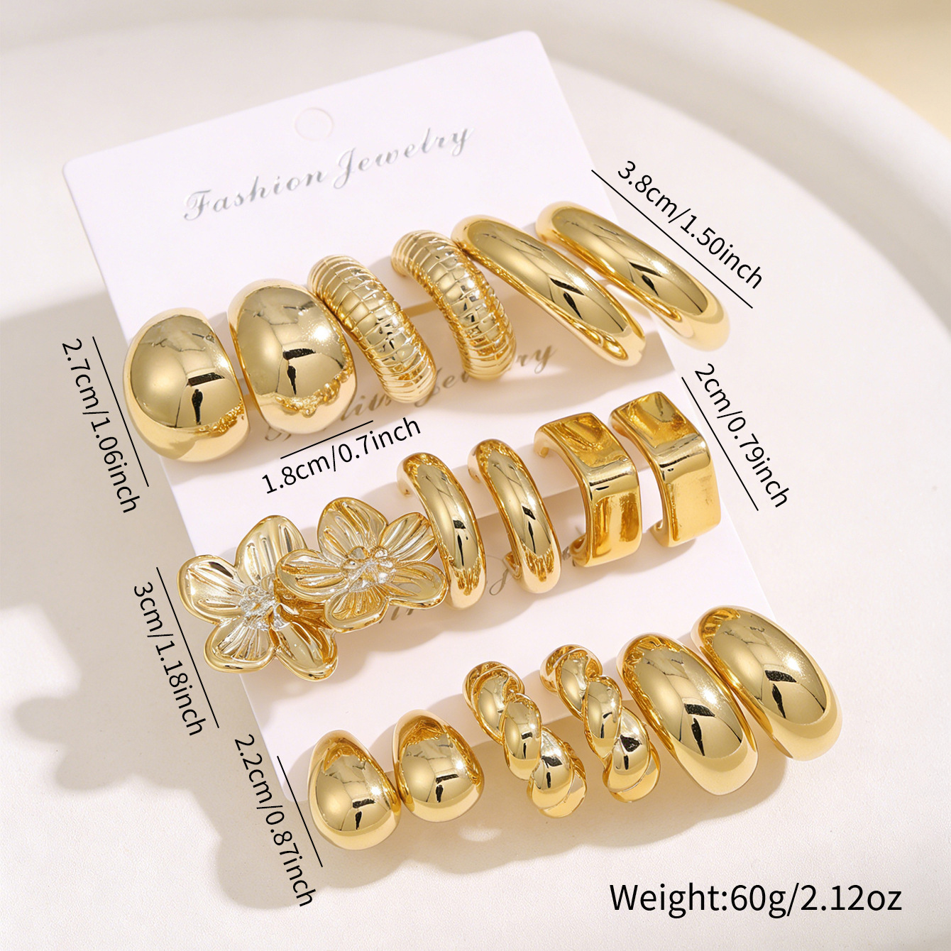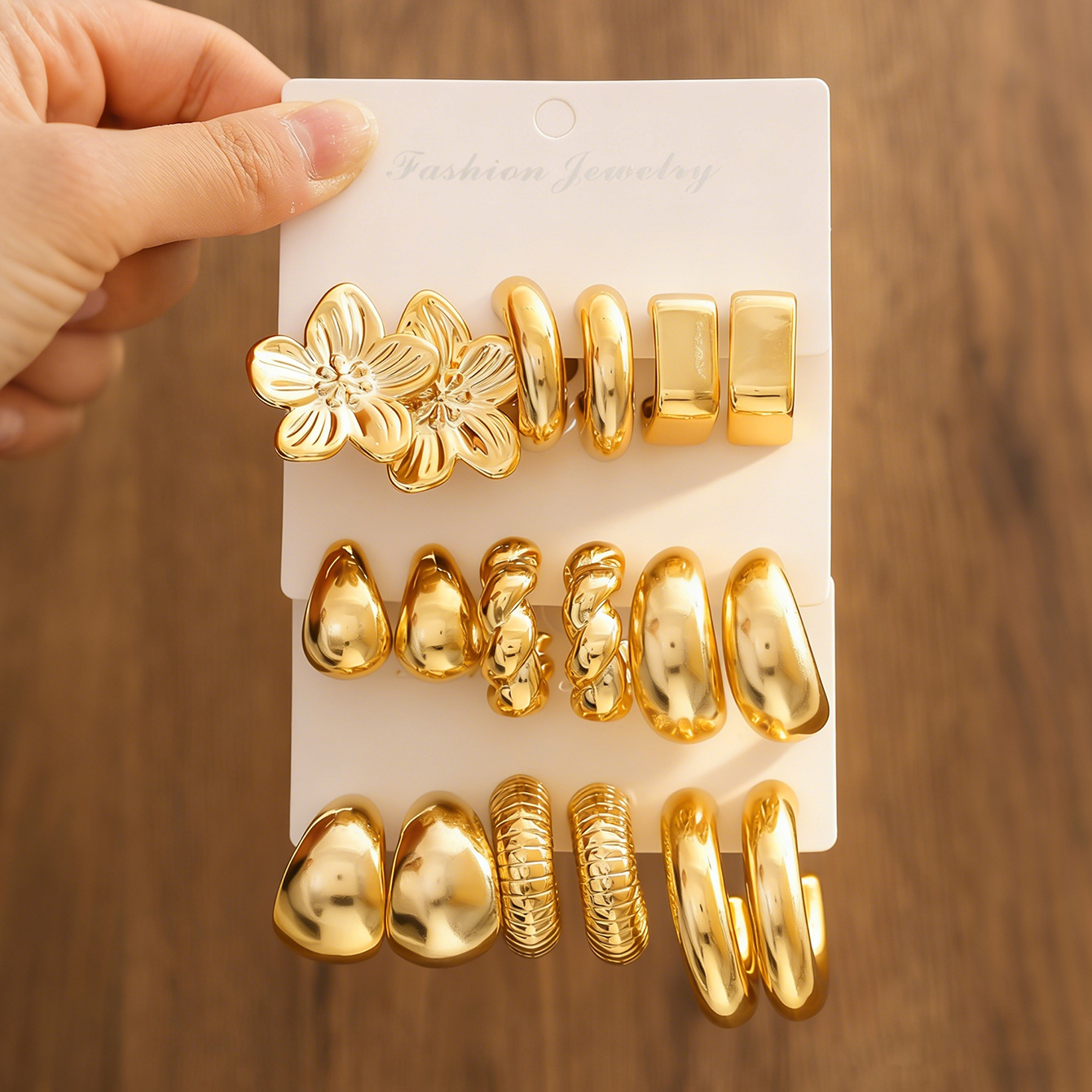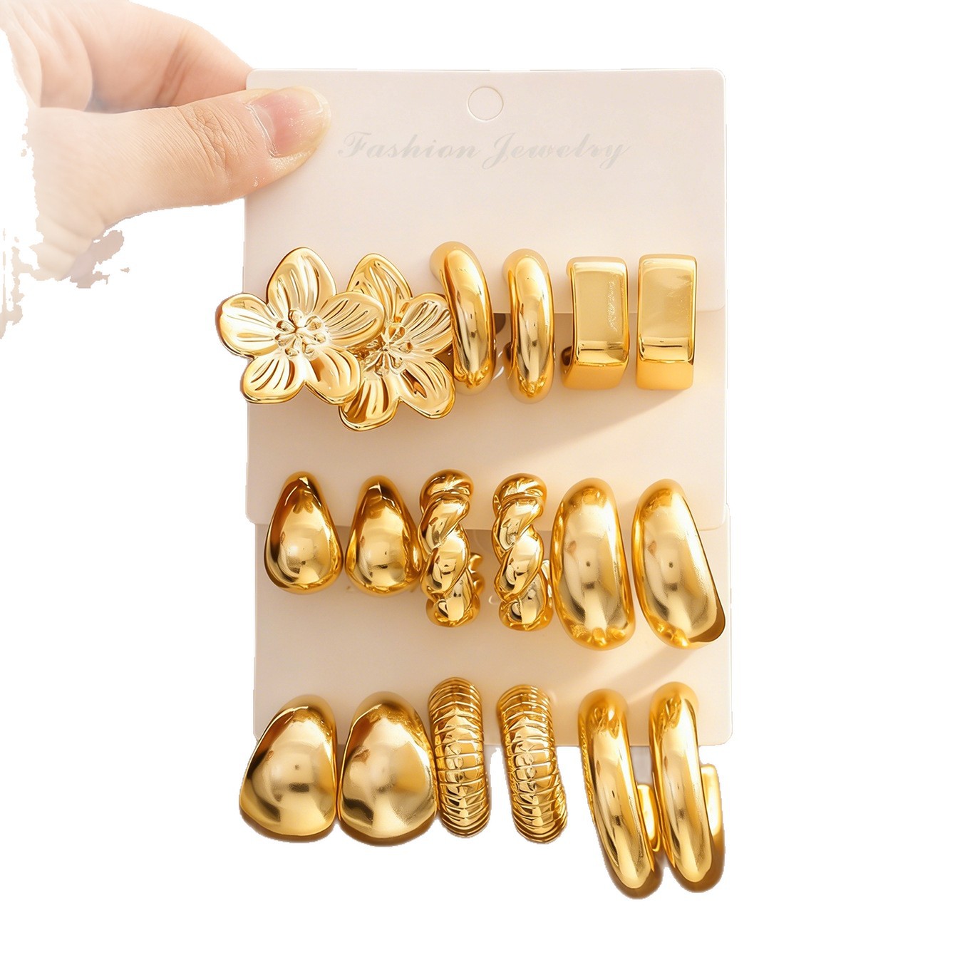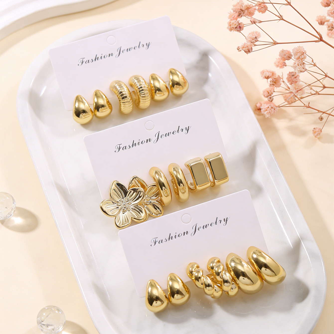 new flower water drop ear studs 9 pairs-gold color