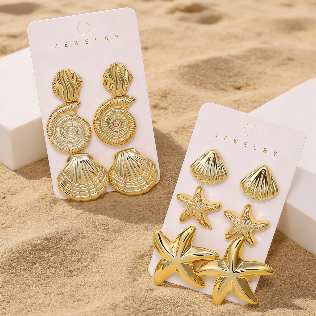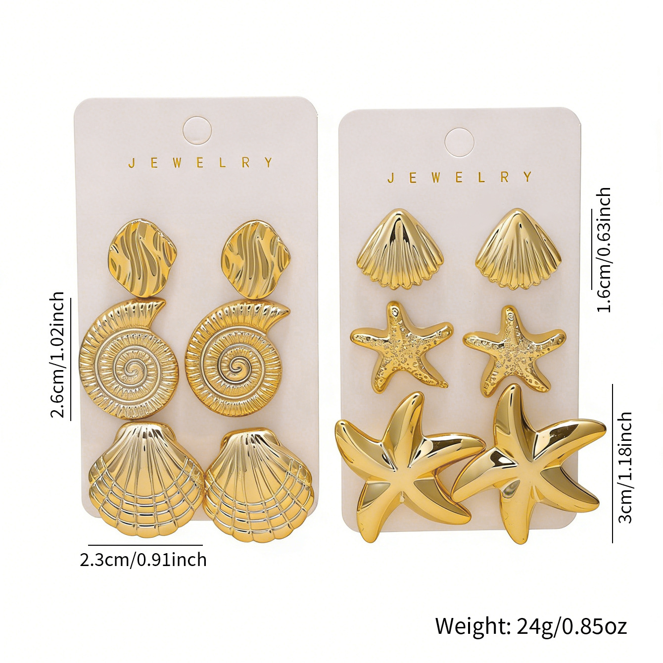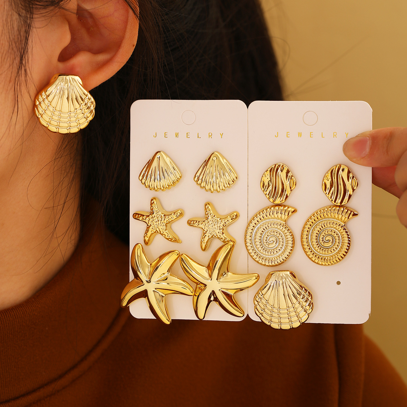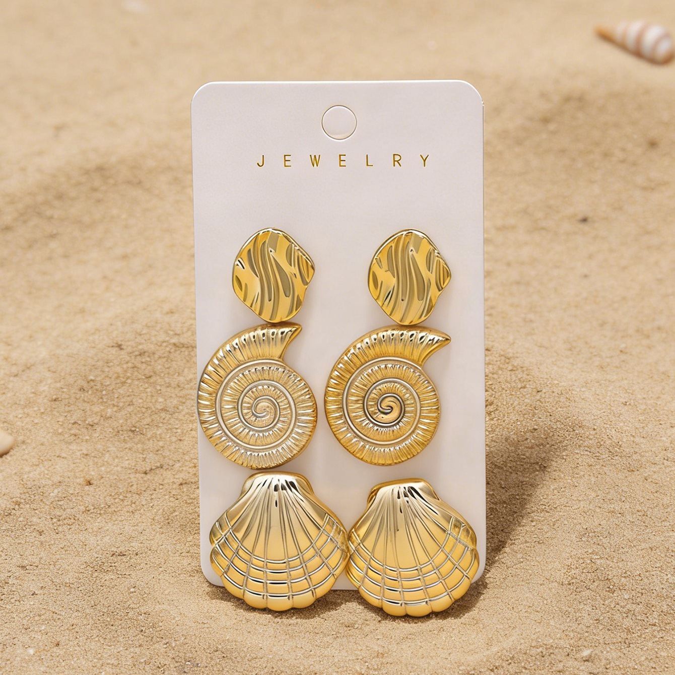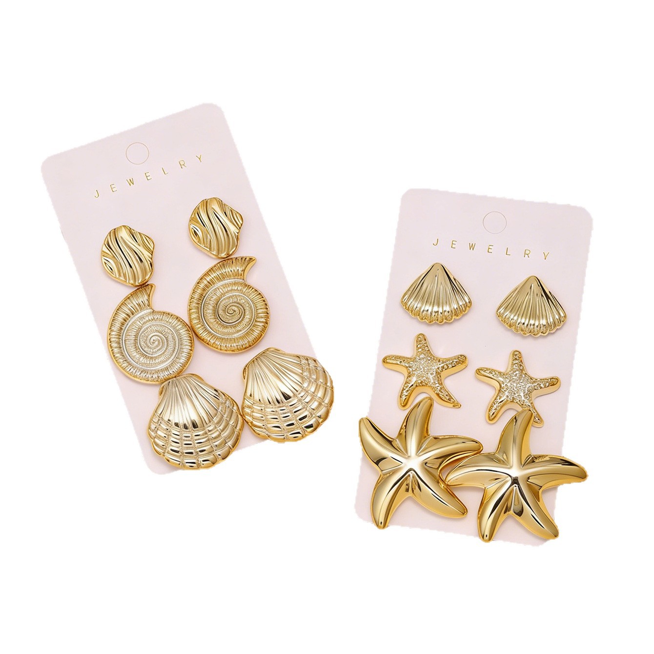 golden-3 pairs of conch earrings