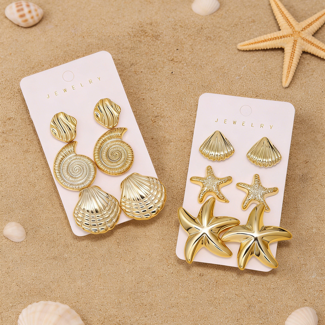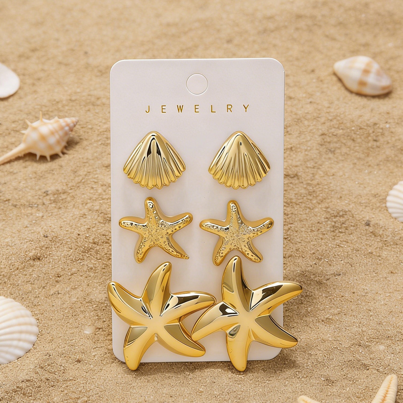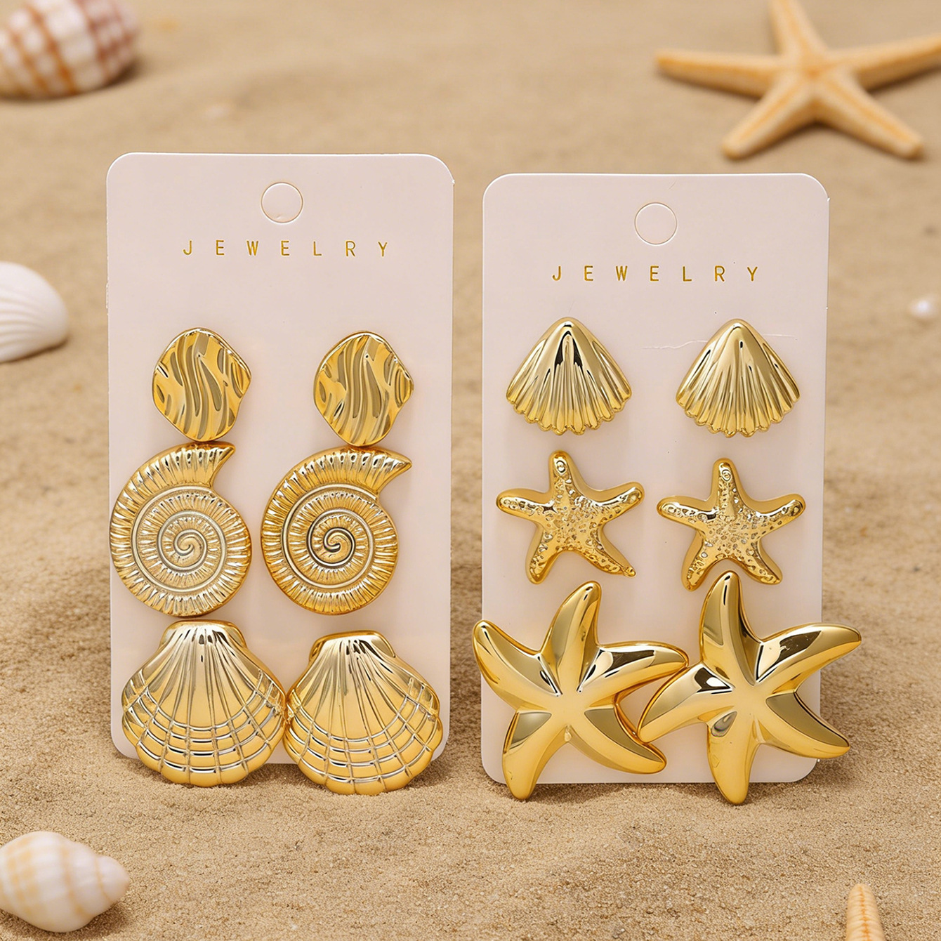golden-3 pairs of starfish stud earrings