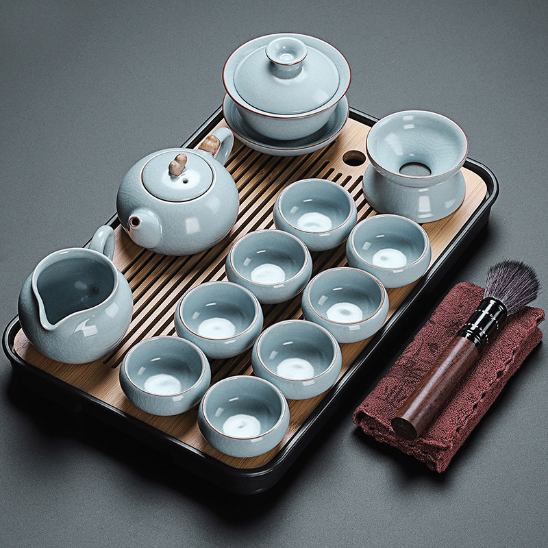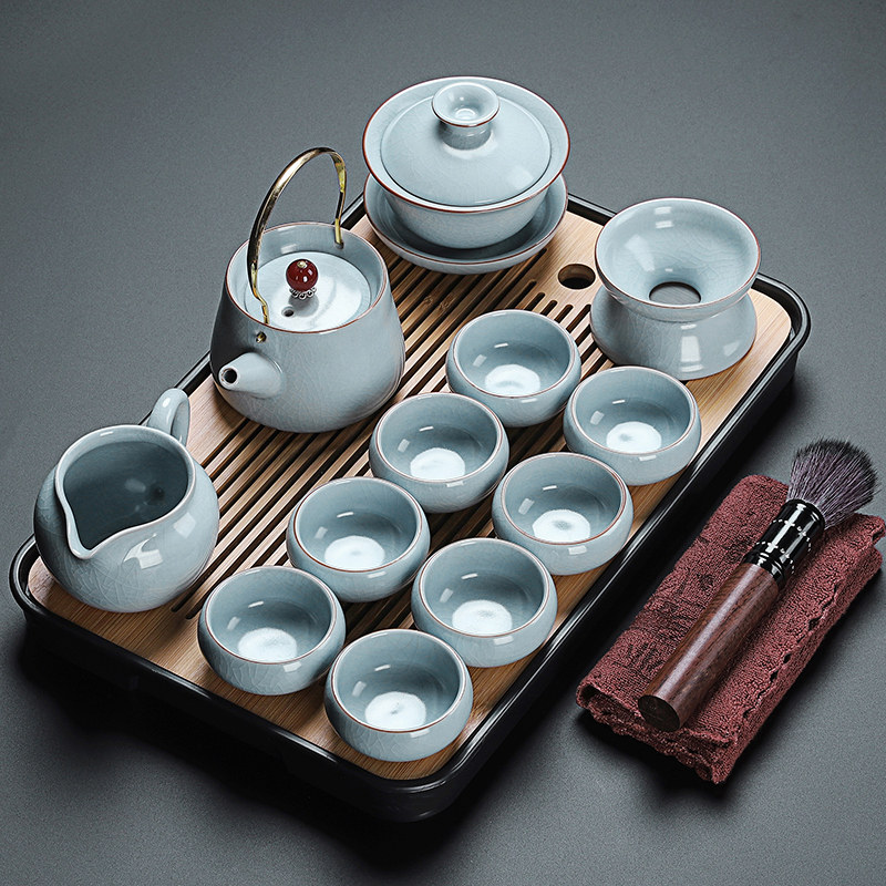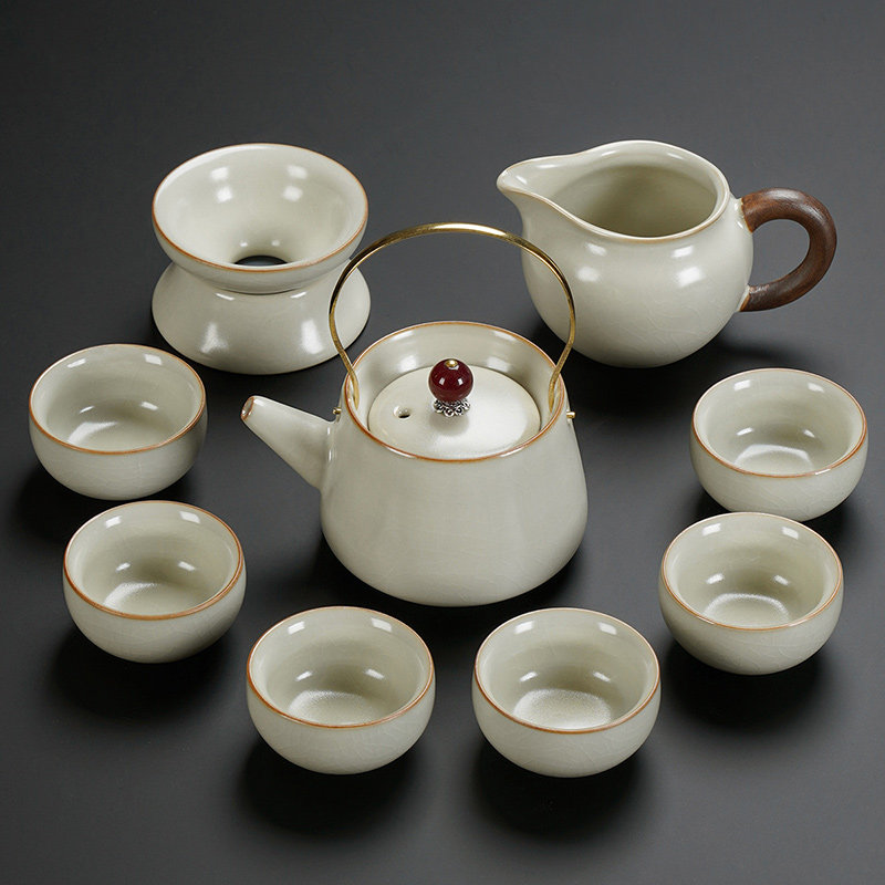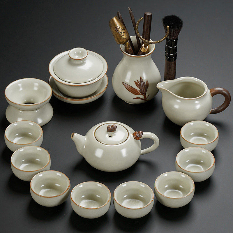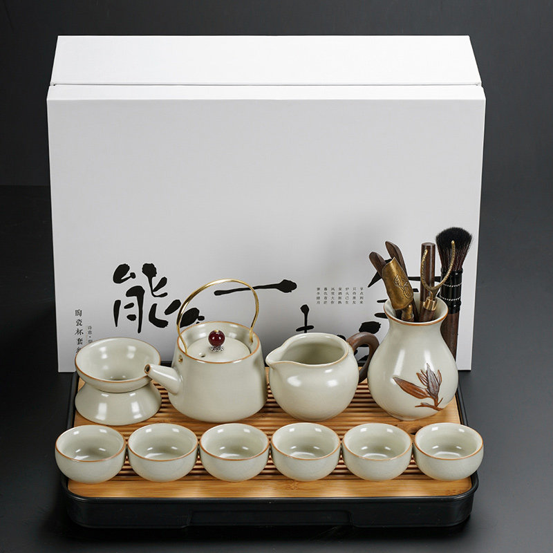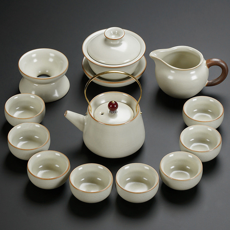 beige ru ware hometown lucky pot tureen eight cups with tea ceremony tea warehouse tea basin 15-piece set