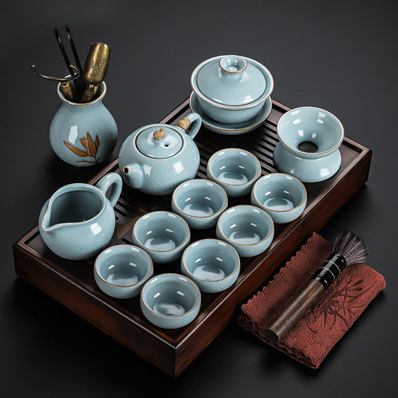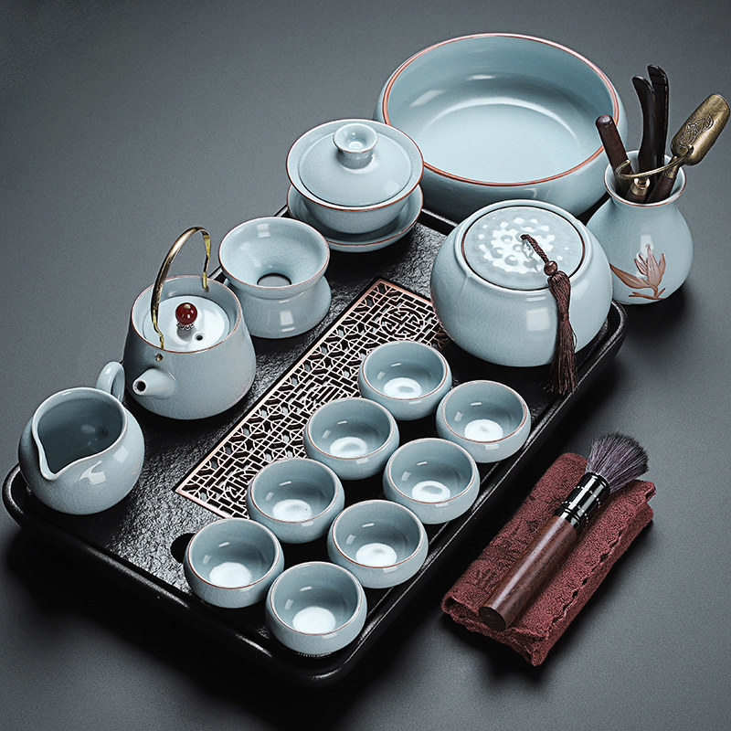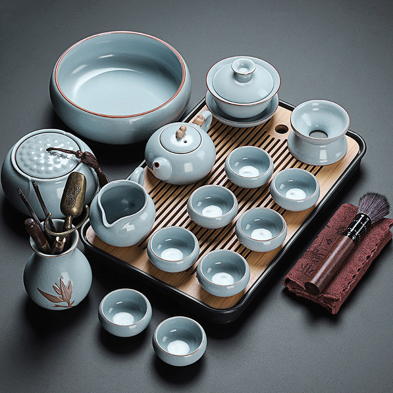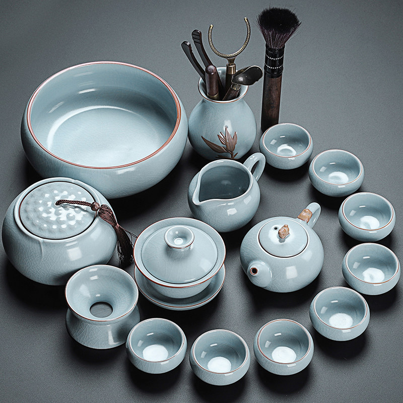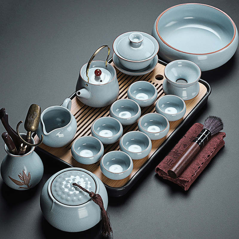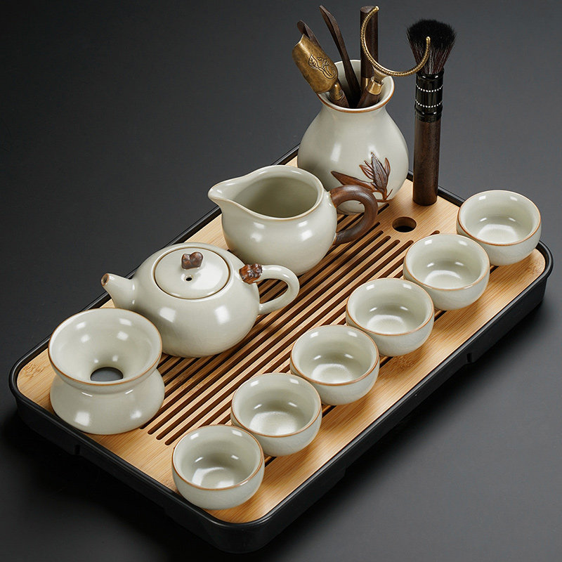 beige ru ware hometown lucky pot tureen eight cups with tea ceremony tea warehouse tea basin 15-piece set