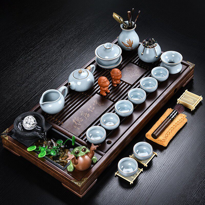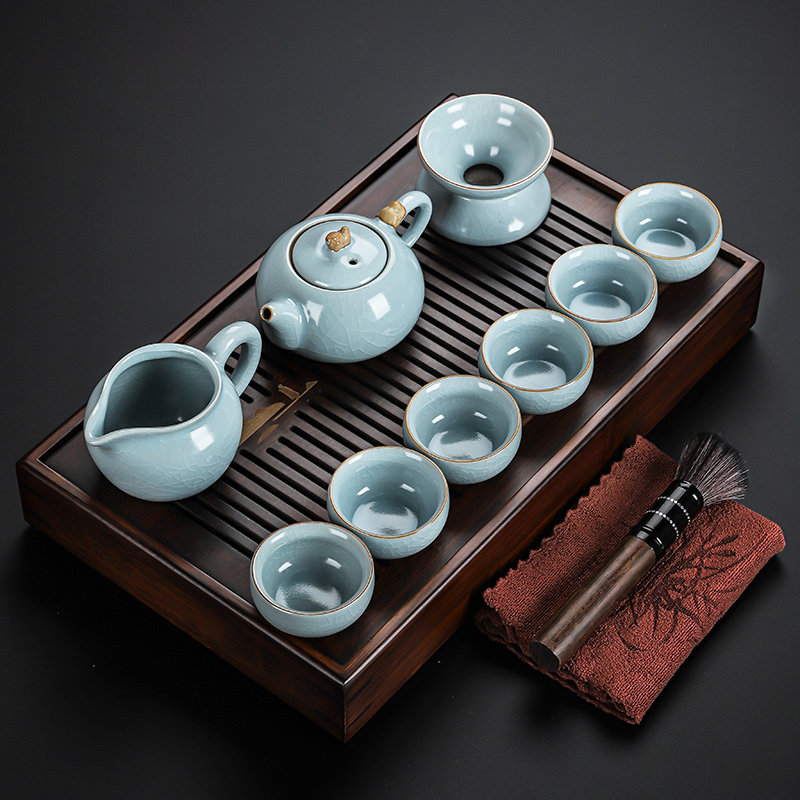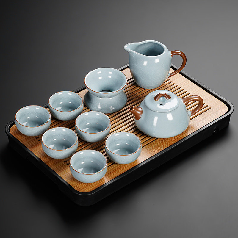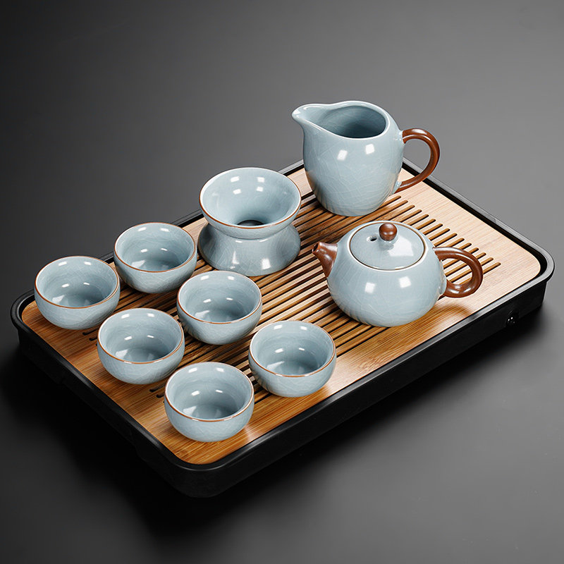 ru ware home eight cups with tea ceremony 13-piece set + tea rhyme towel + mountain tea tray-middle