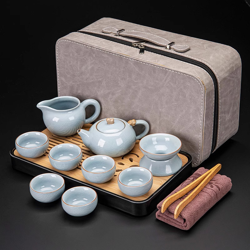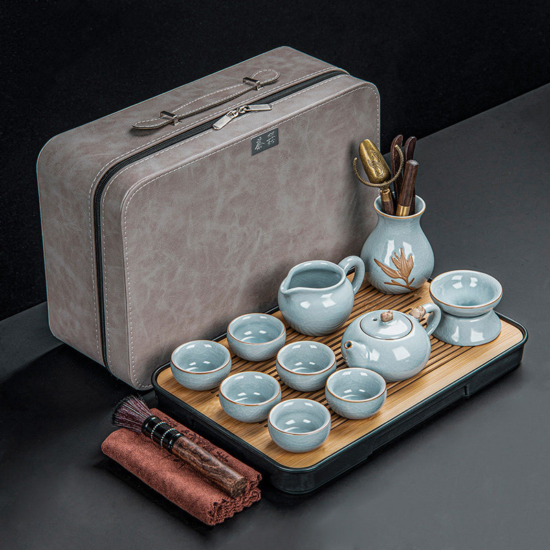 ru ware home tureen six cups with tea ceremony 10-piece set + rectangular black tea tray + travel bag + tea towel