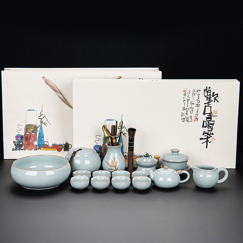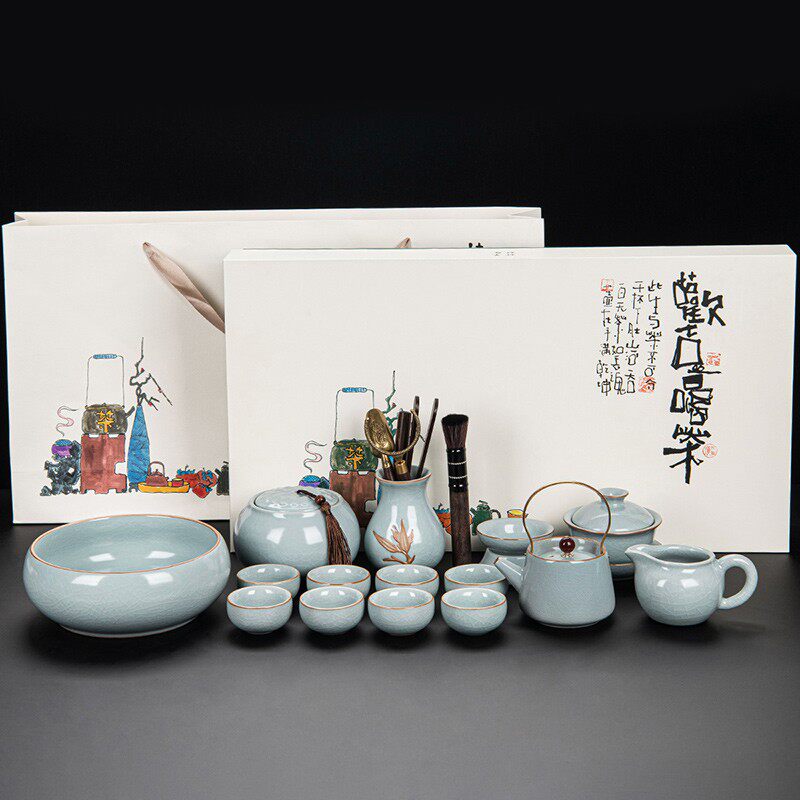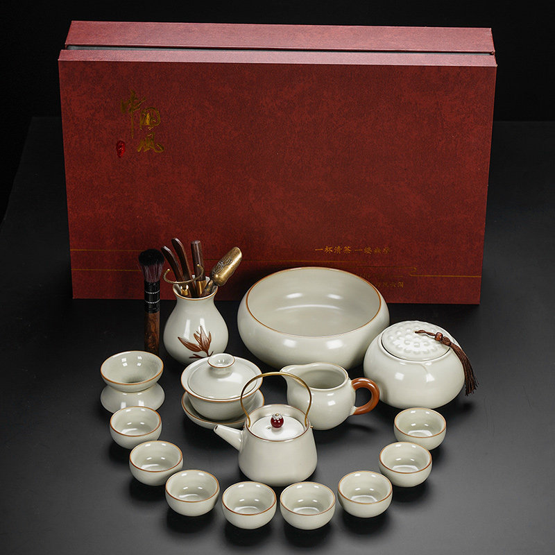 ru ware hometown lucky pot tureen eight cups with tea ceremony tea pot tea basin 15-piece set + happy gift box-large