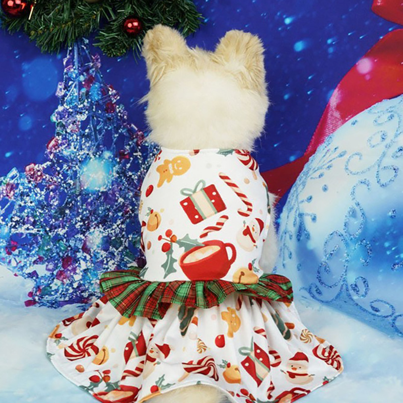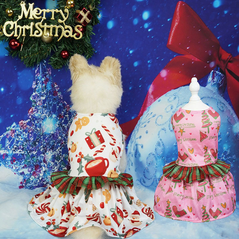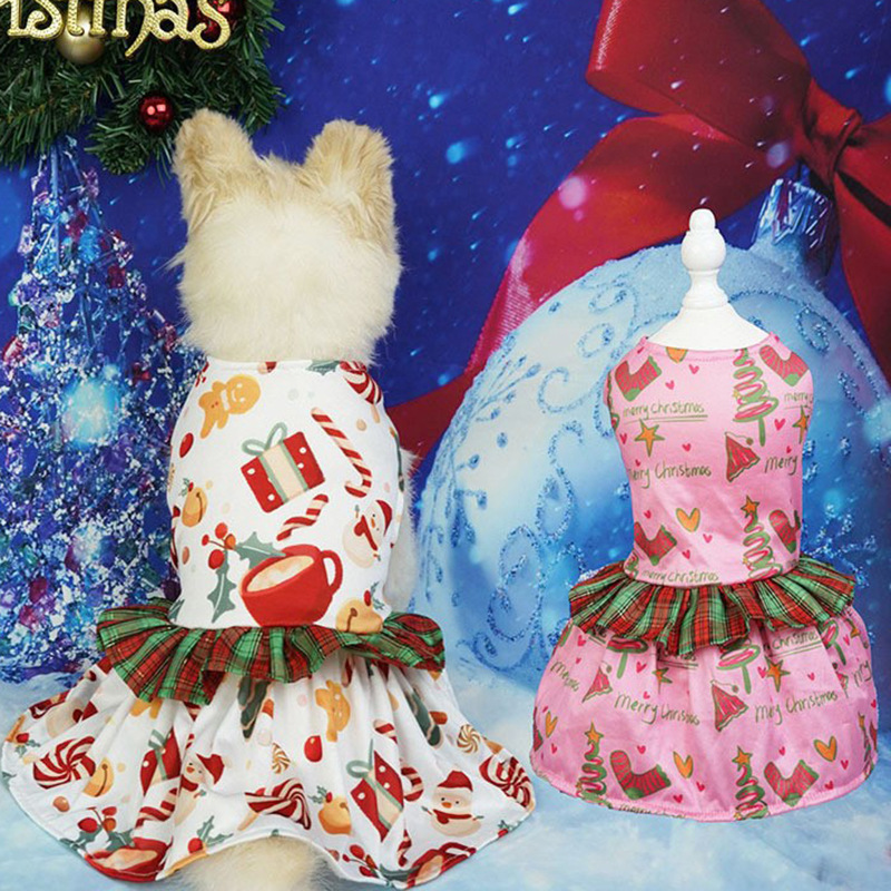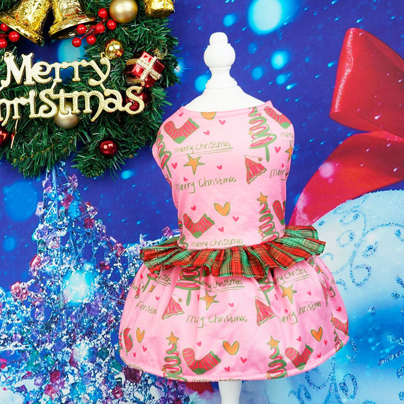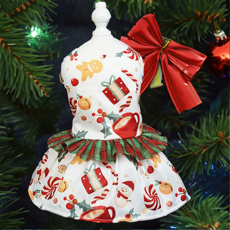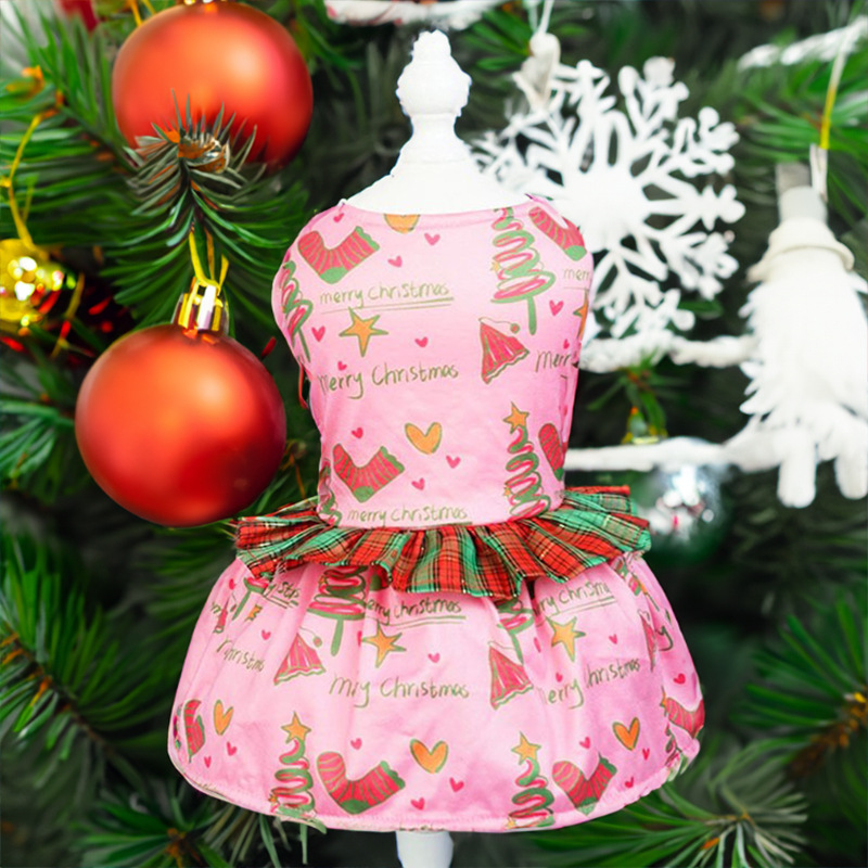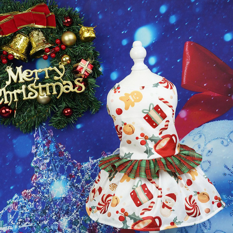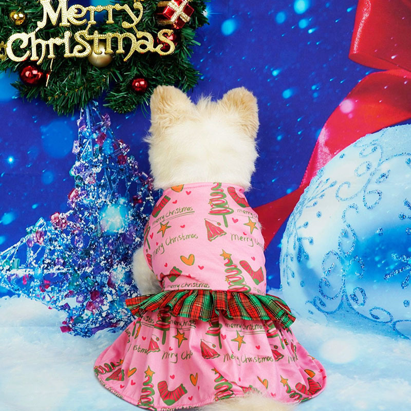 pet clothing christmas plaid lace skirt new christmas dog clothes pet party gift skirt
