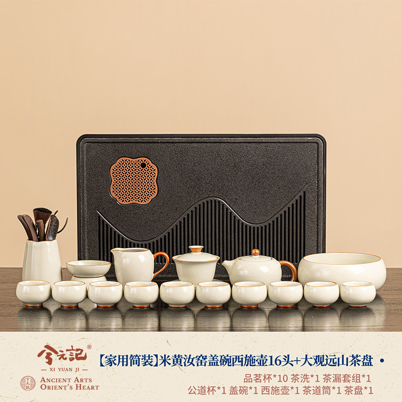 [household simple package] beige ru-kiln xi shi pot 16 heads + daguan yuanshan tea tray