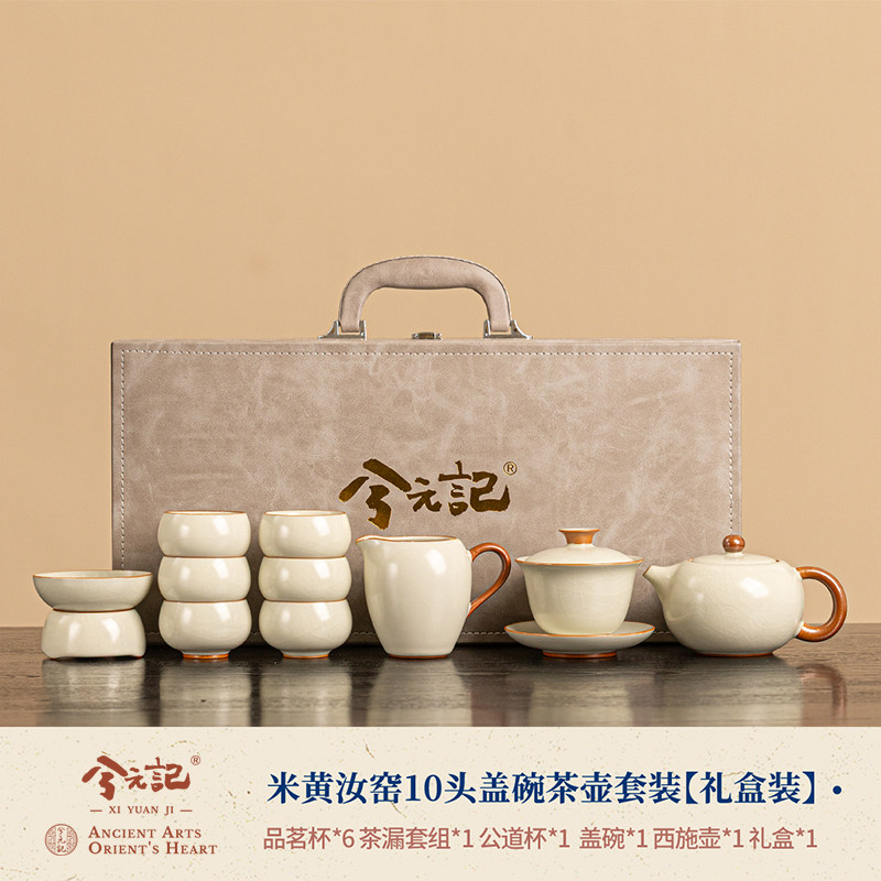 beige ru ware 10-head gaiwan teapot set [gift box]]