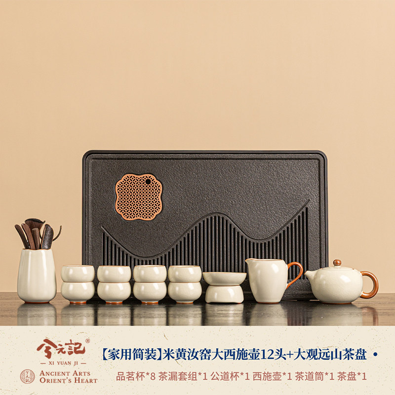 [household simple package] beige ru ware large xi shi pot 12 heads + daguan yuanshan tea tray