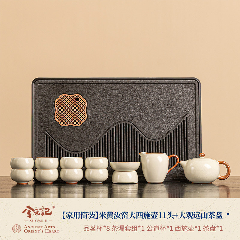 [household simple package] beige ru ware large xi shi pot 11 heads + daguan yuanshan tea tray