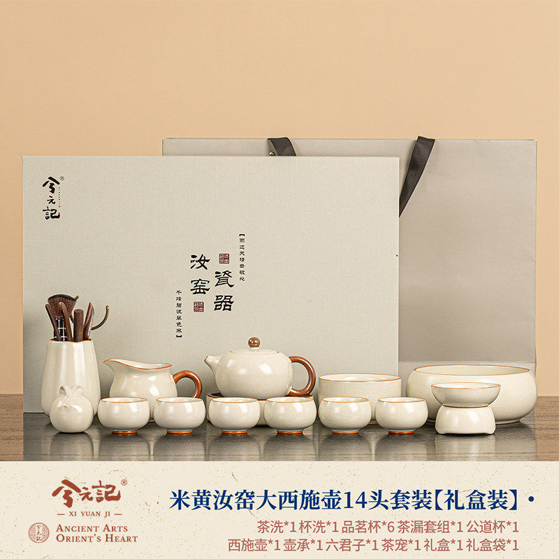 beige ru ware large xi shi pot 14-head set [gift box]]