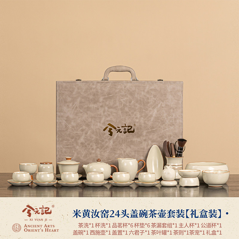beige ru ware 24-head gaiwan teapot set [gift box]]