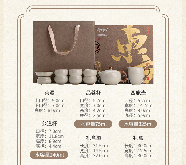 beige ru ware large xi shi pot 9-head set [portable gift box]]