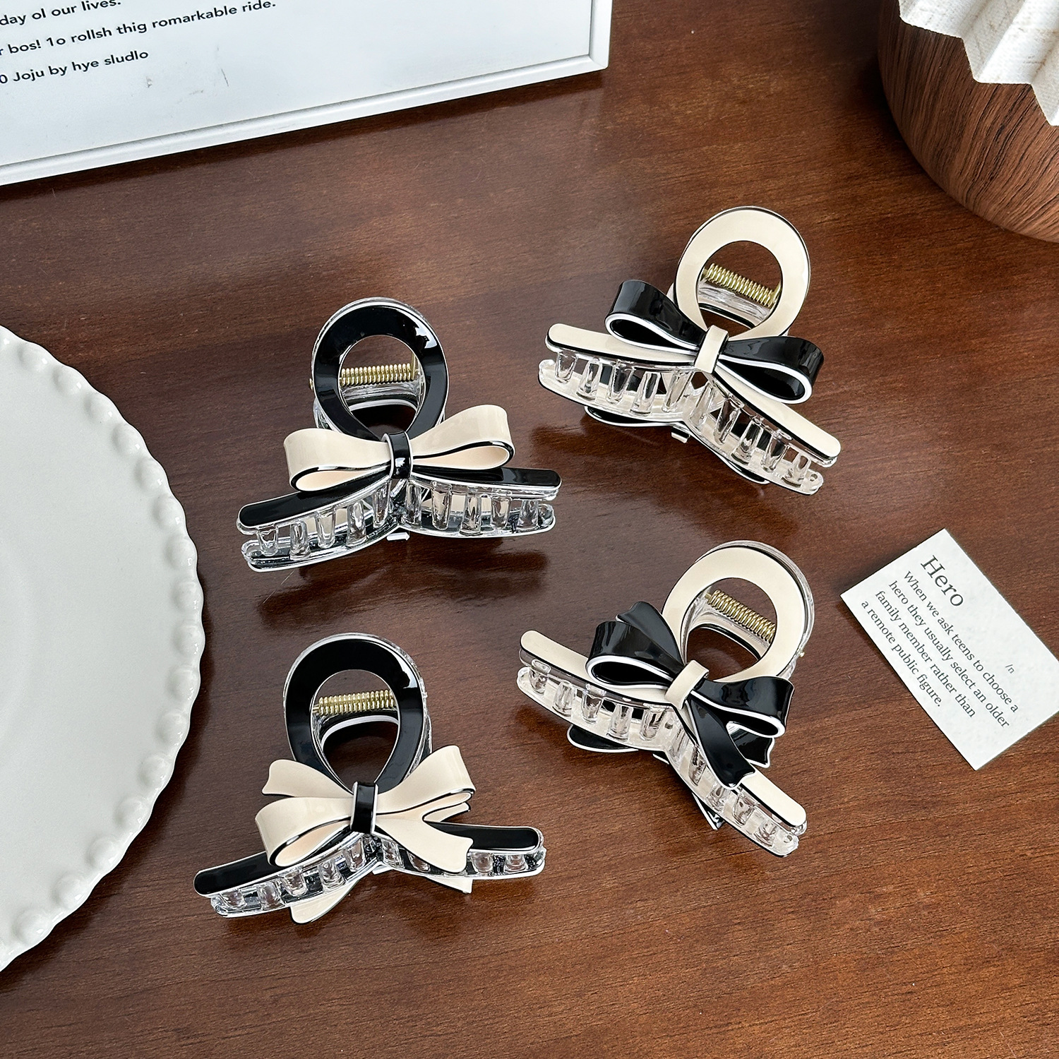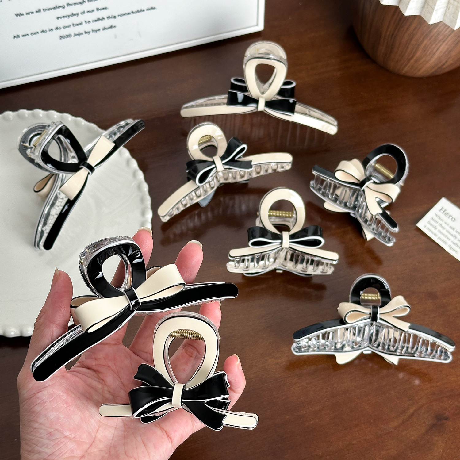 black background bow, medium size-11cm
