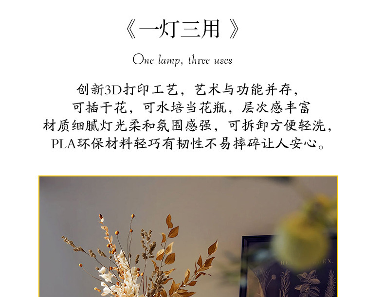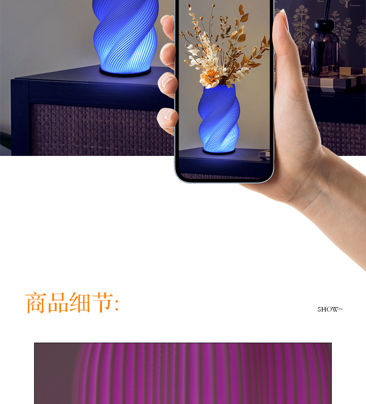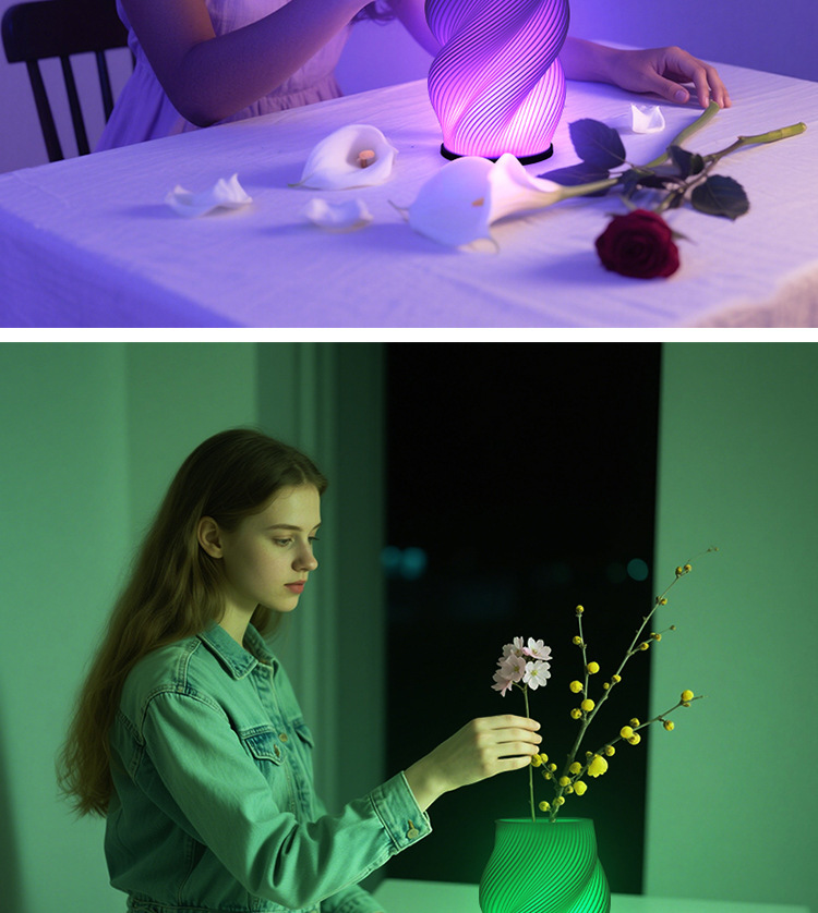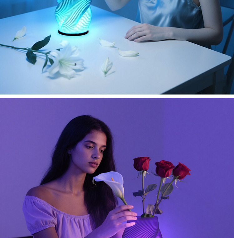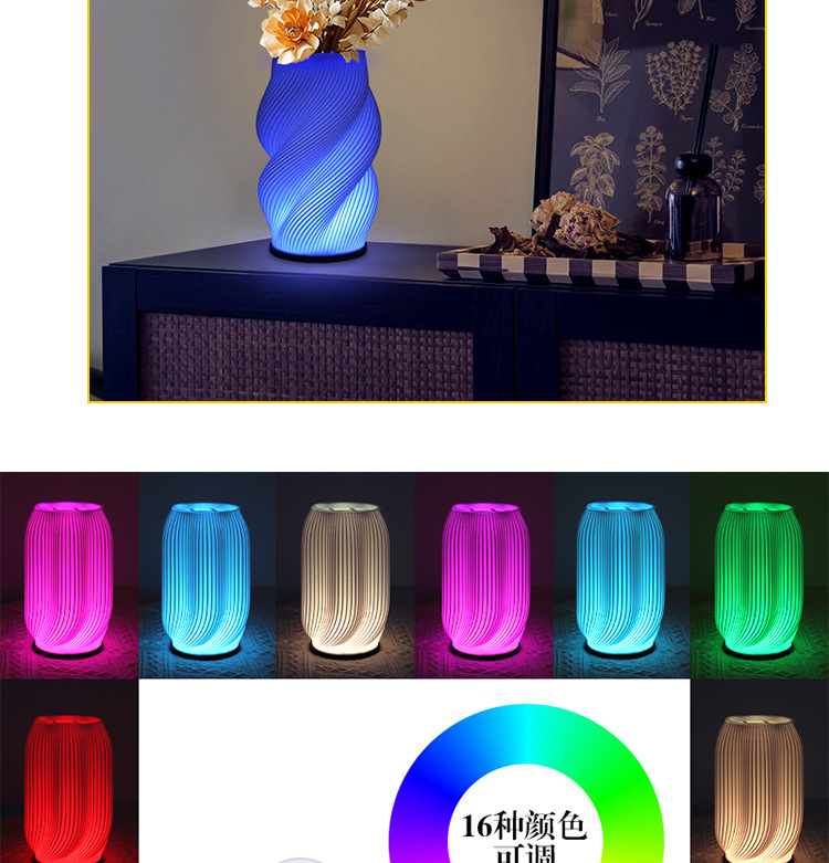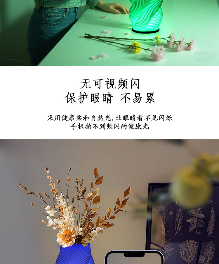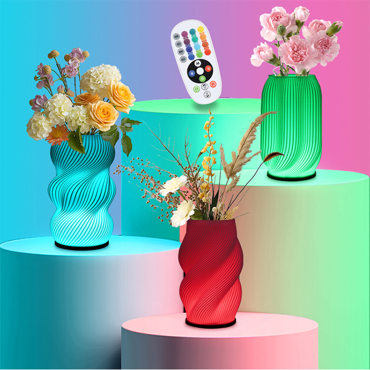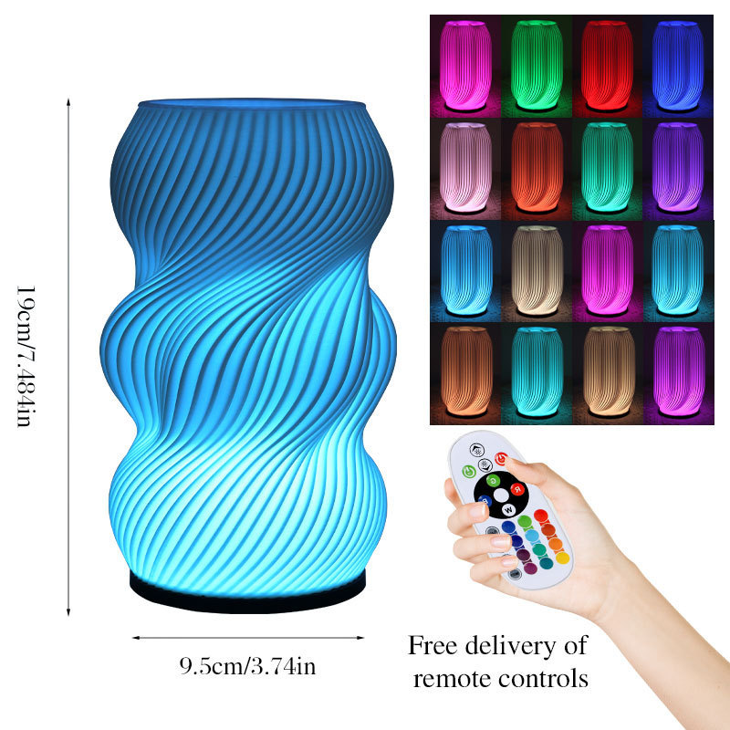 exclusive for cross-border 3d printing decorative vase table lamp foreign trade wholesale creative bedroom decoration romantic bedside small night lamp