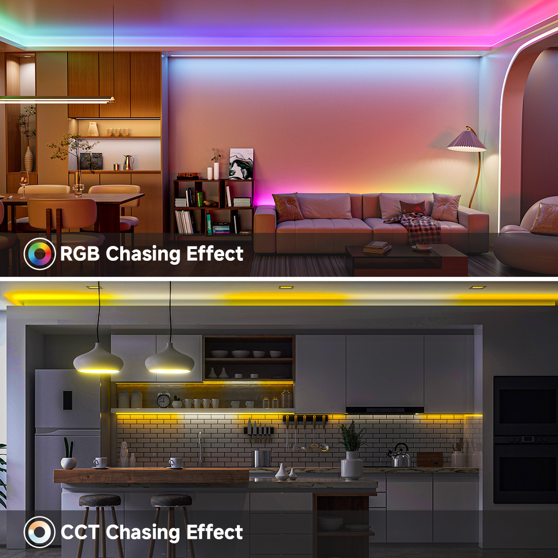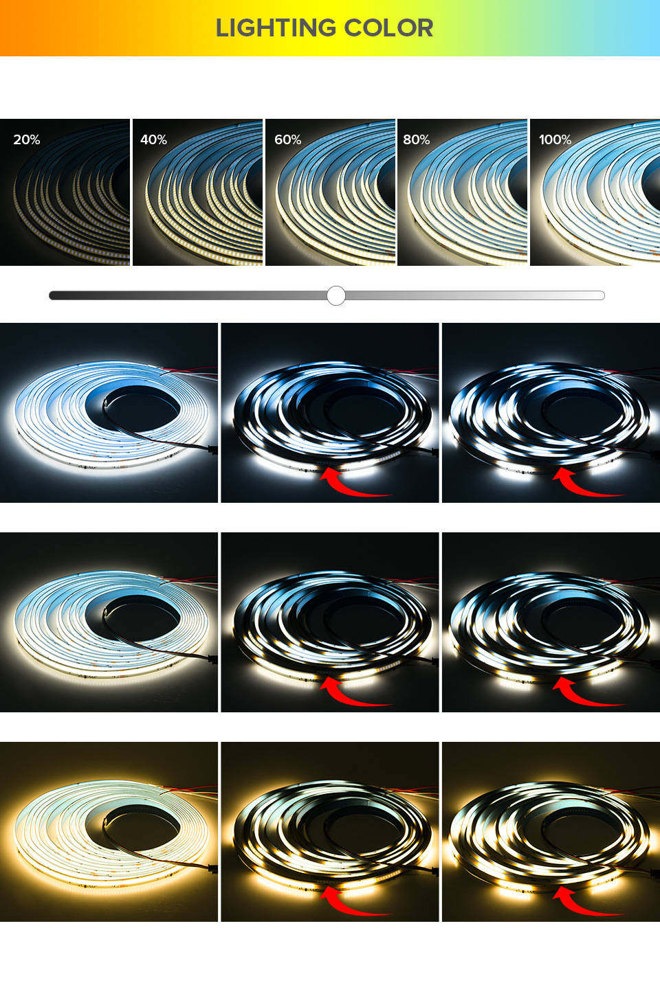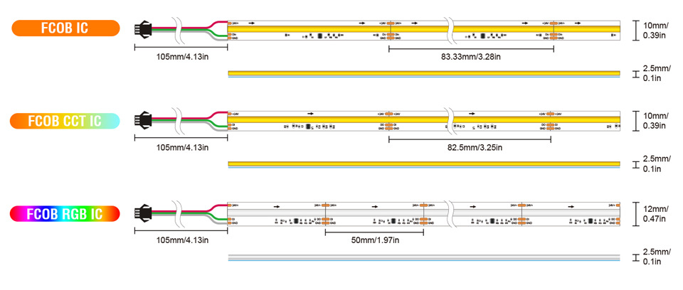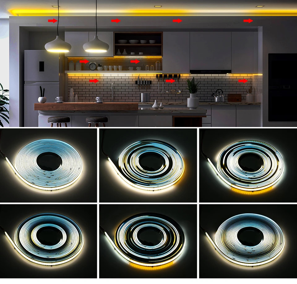 【24v bi-color running water】cob★【cct 576 lamp/m】width 10mm★5 meters