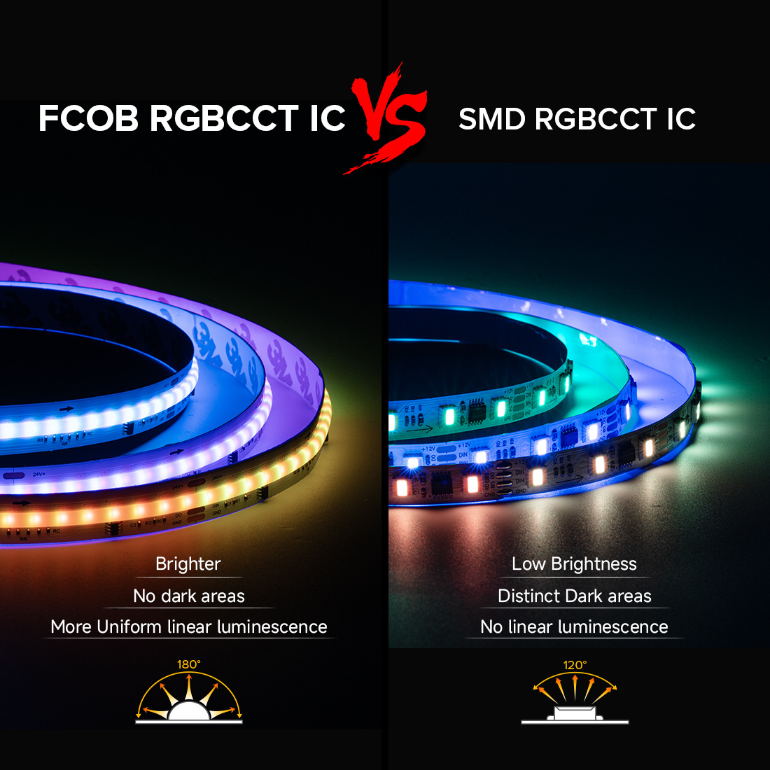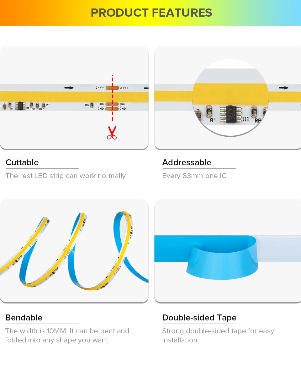 【12v magic color】cob★【rgb 720 lights/m】10mm wide★5 meters