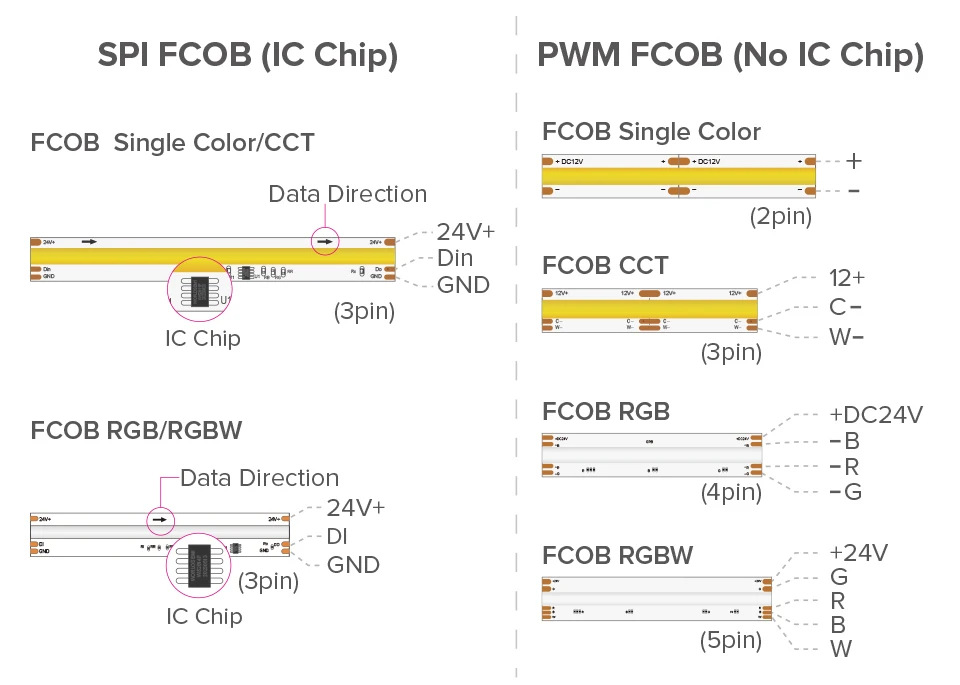 [24v dream white warm] cob★[rgbcw 840 lamp/m] 15mm★5 meters