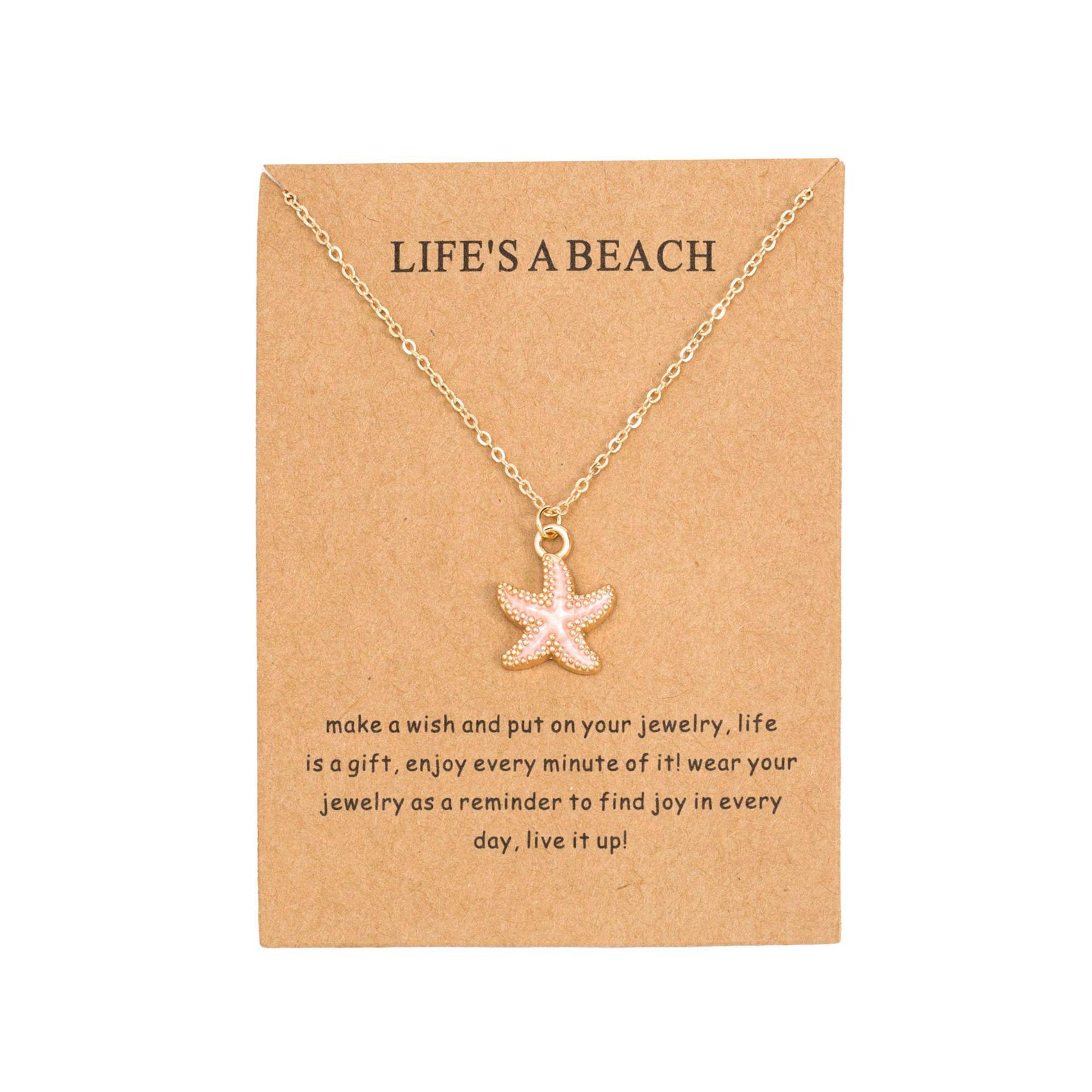 pink starfish white card