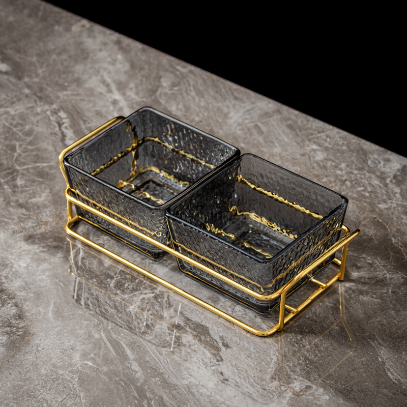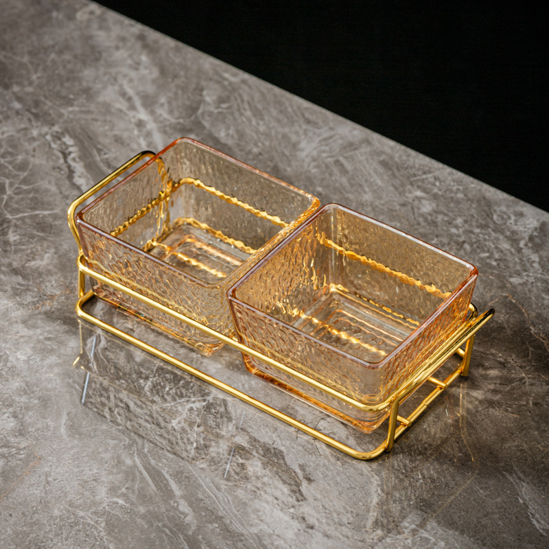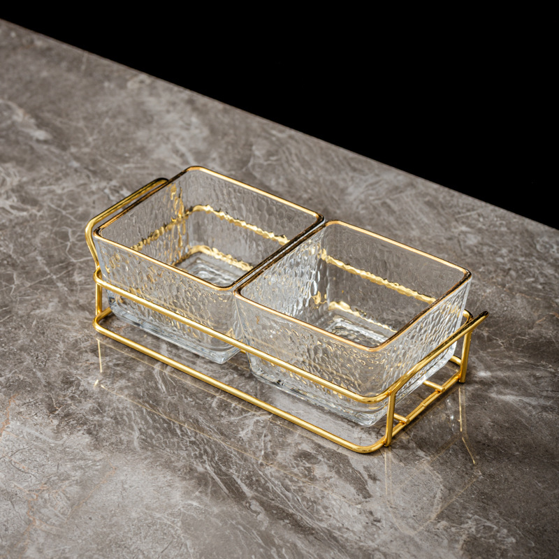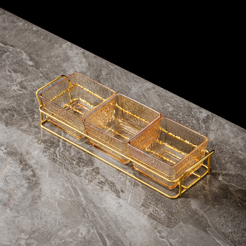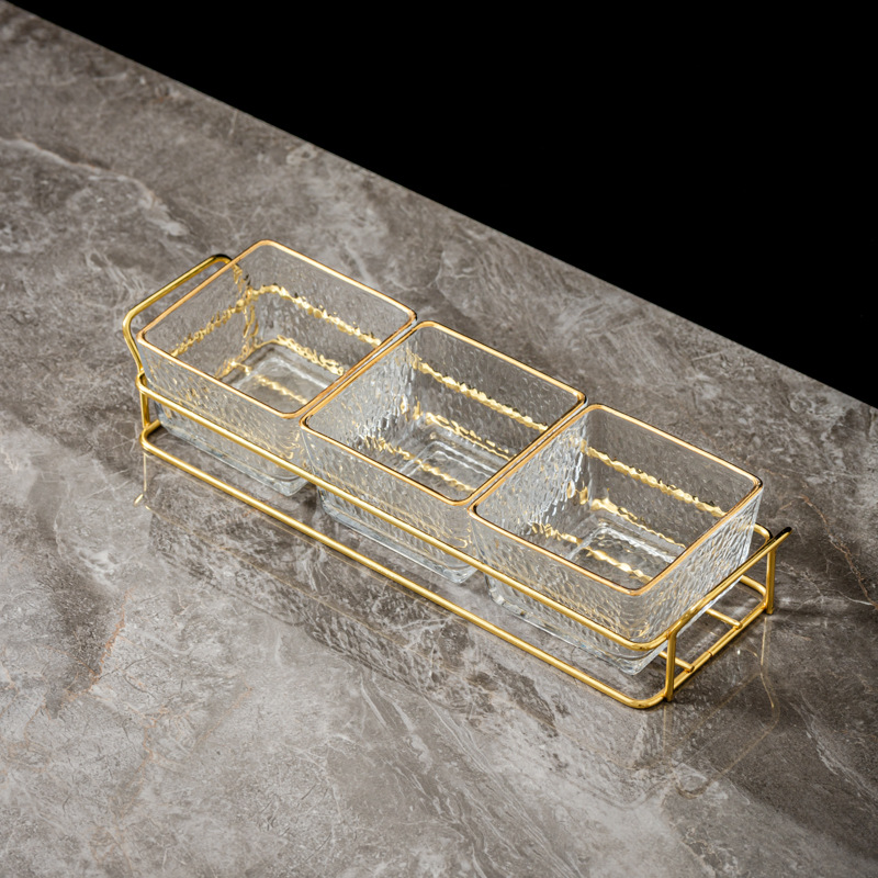 three-compartment transparent hammered plastic dish + square-ear metal frame