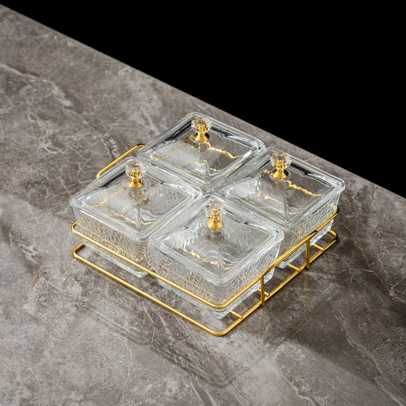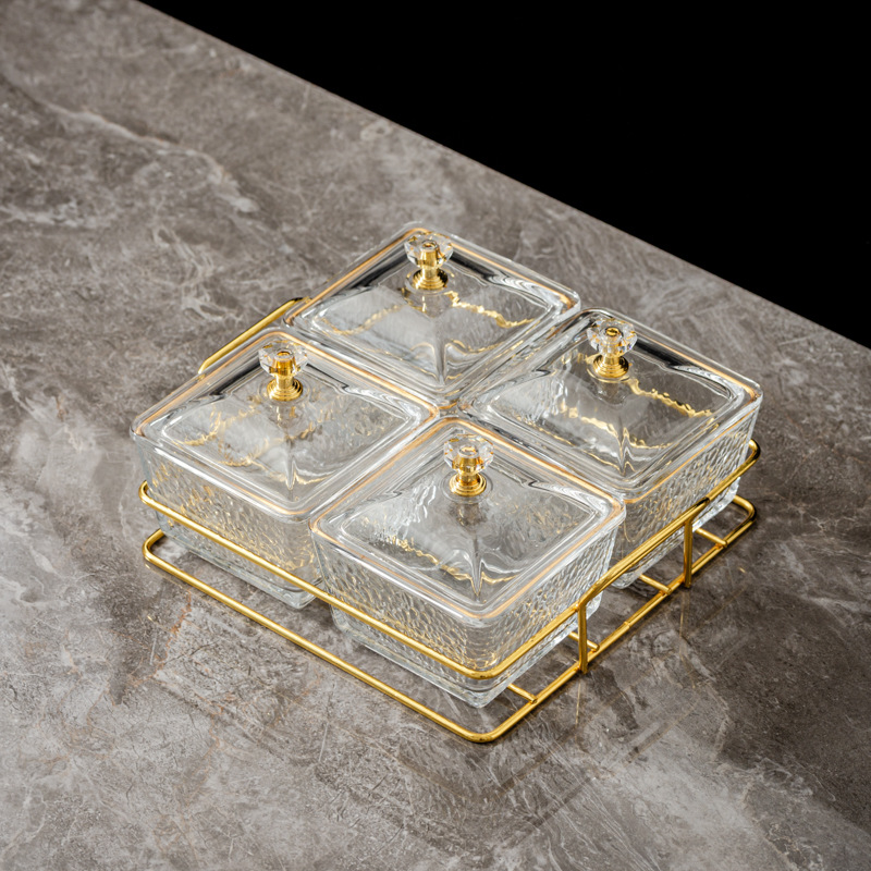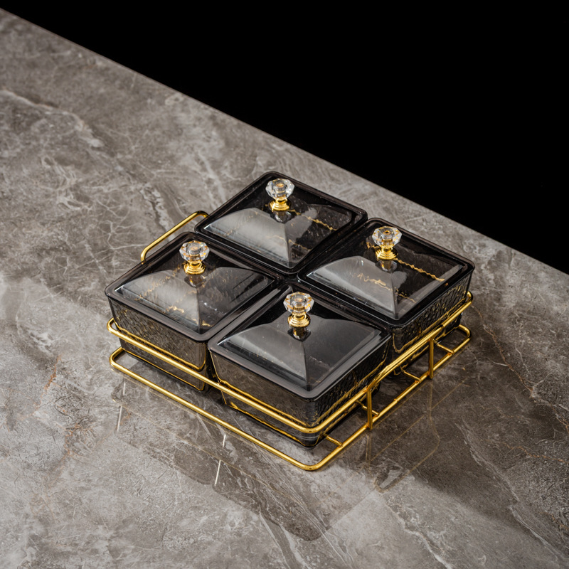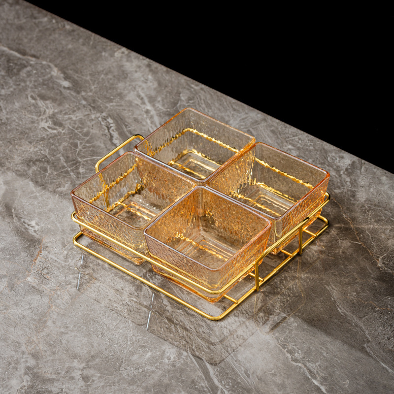 four-compartment transparent hammered plastic dish + square-ear metal frame