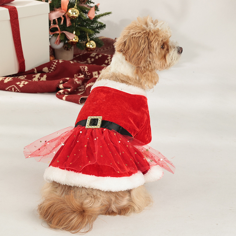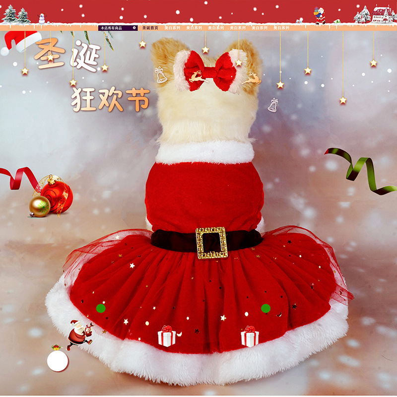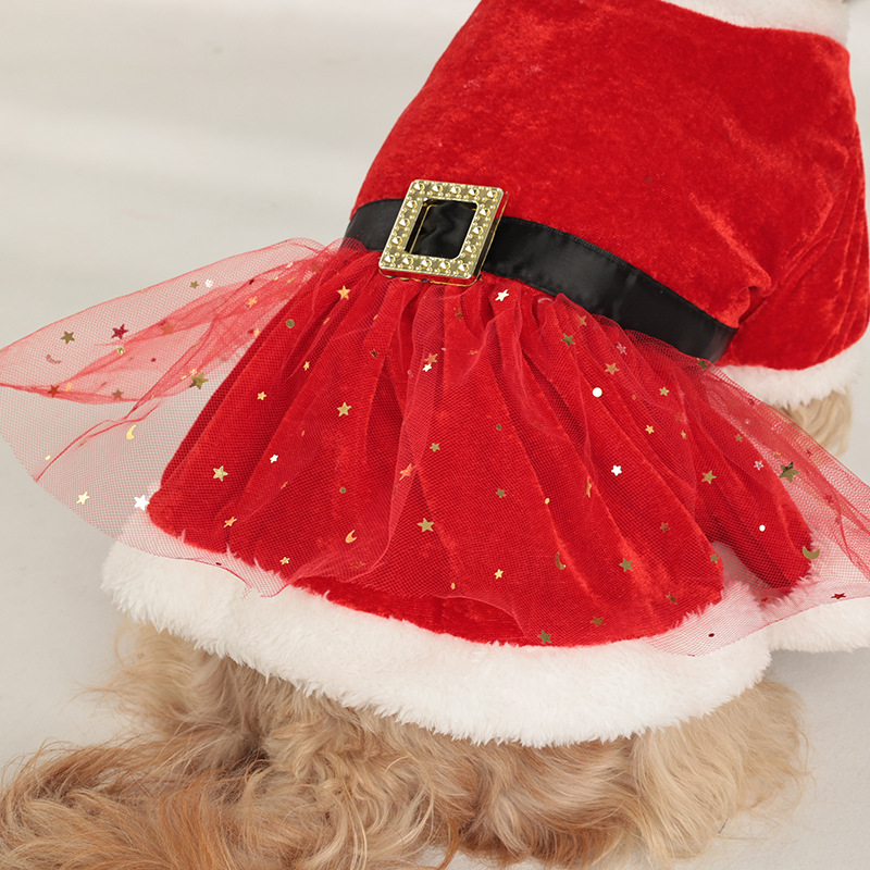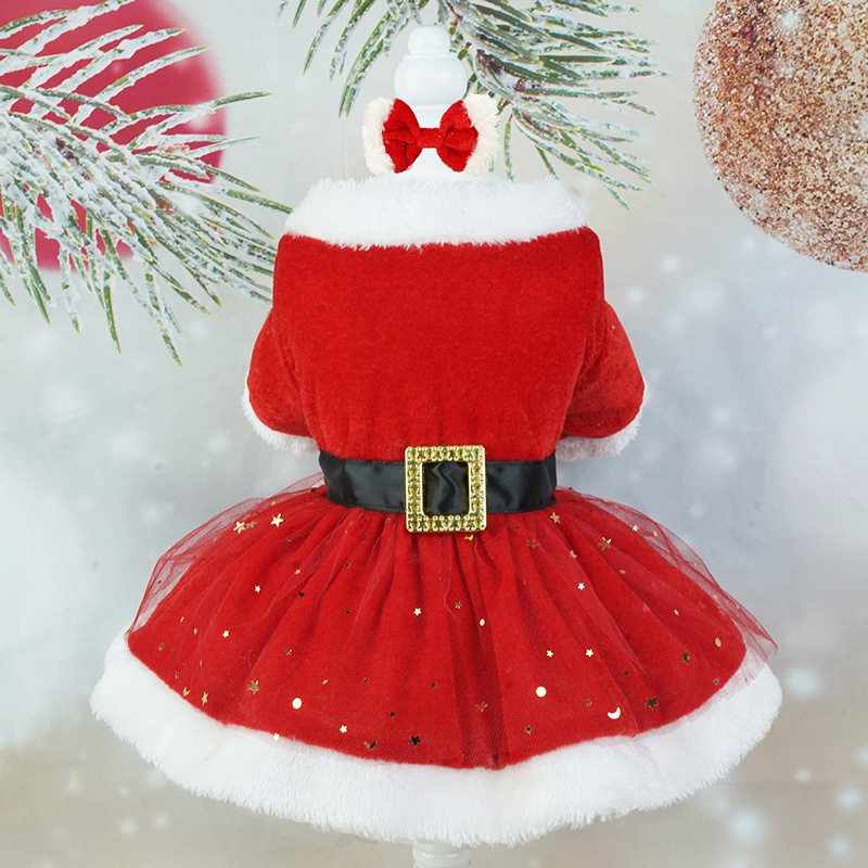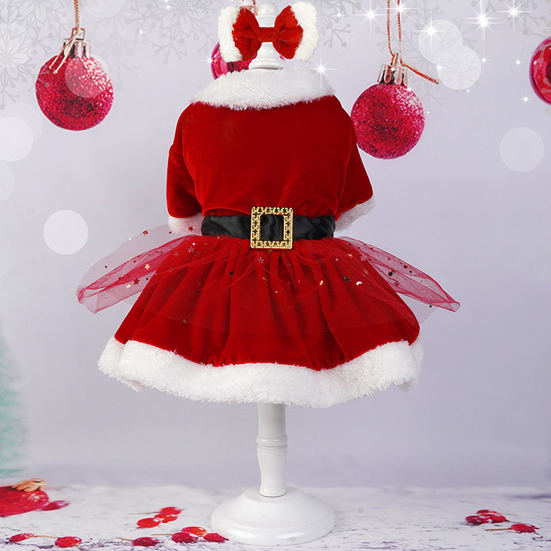 christmas pet clothing christmas gold velvet fabric santa claus dress up with hair band red tulle skirt