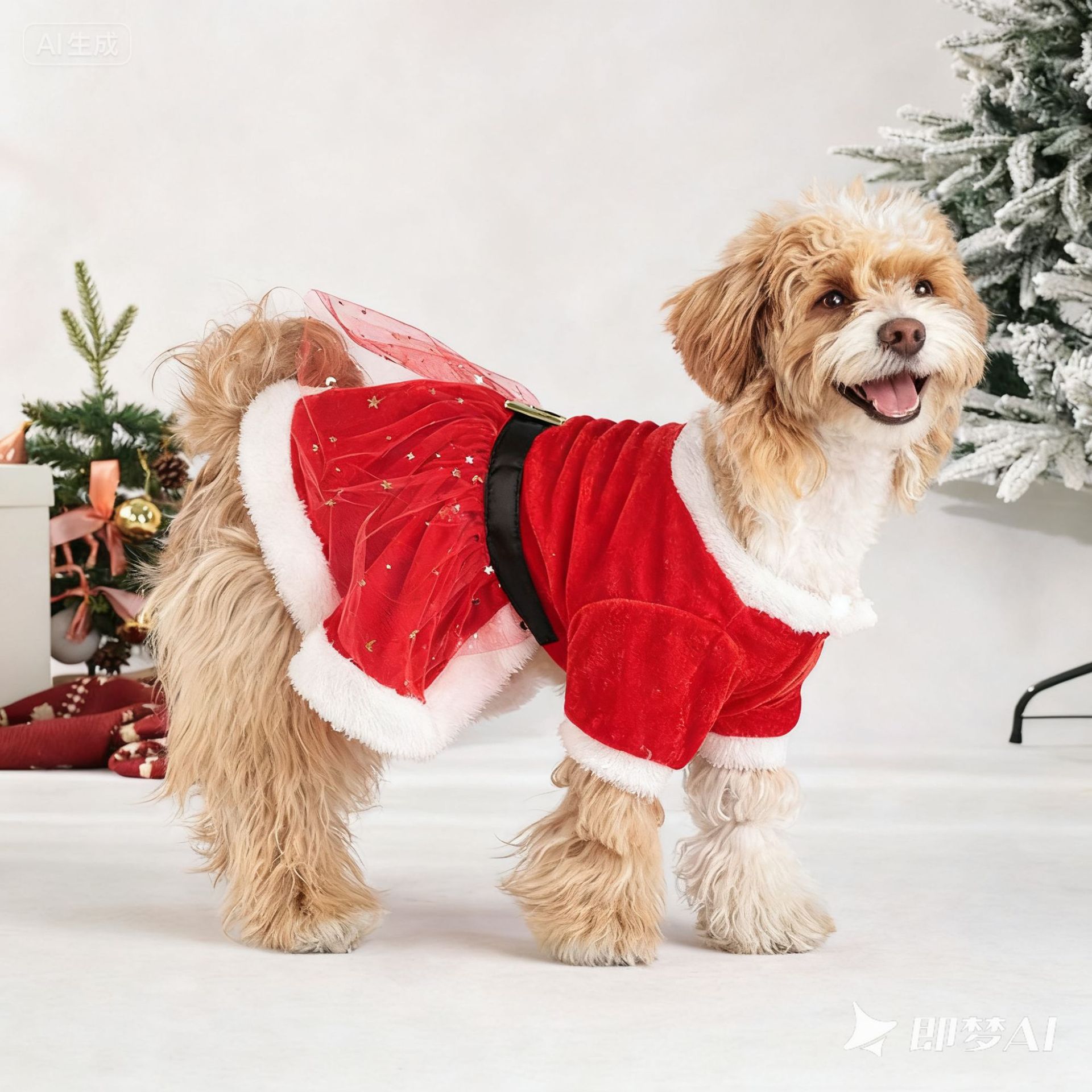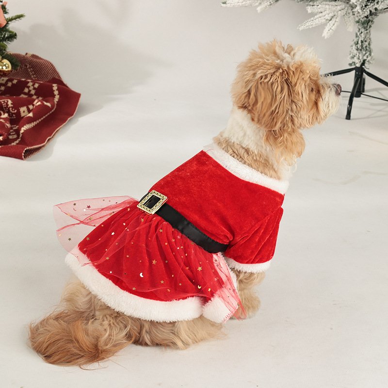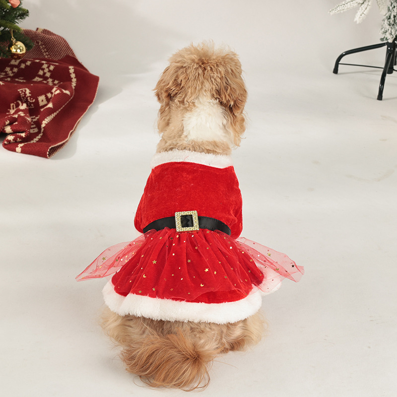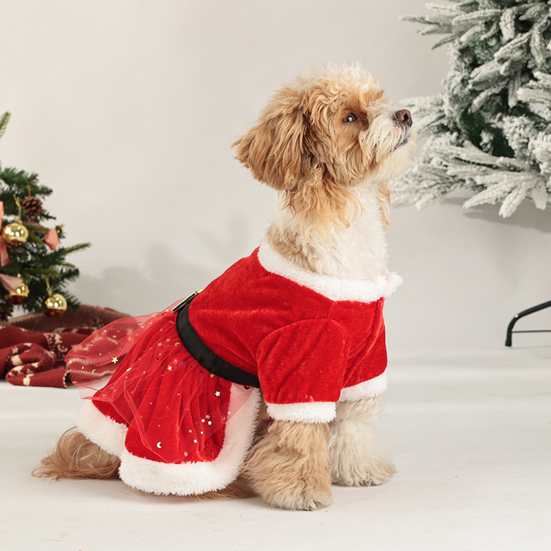christmas pet clothing christmas gold velvet fabric santa claus dress up with hair band red tulle skirt