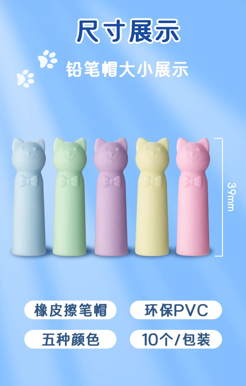 pencil cap-cat's paw multicolor-10 pcs