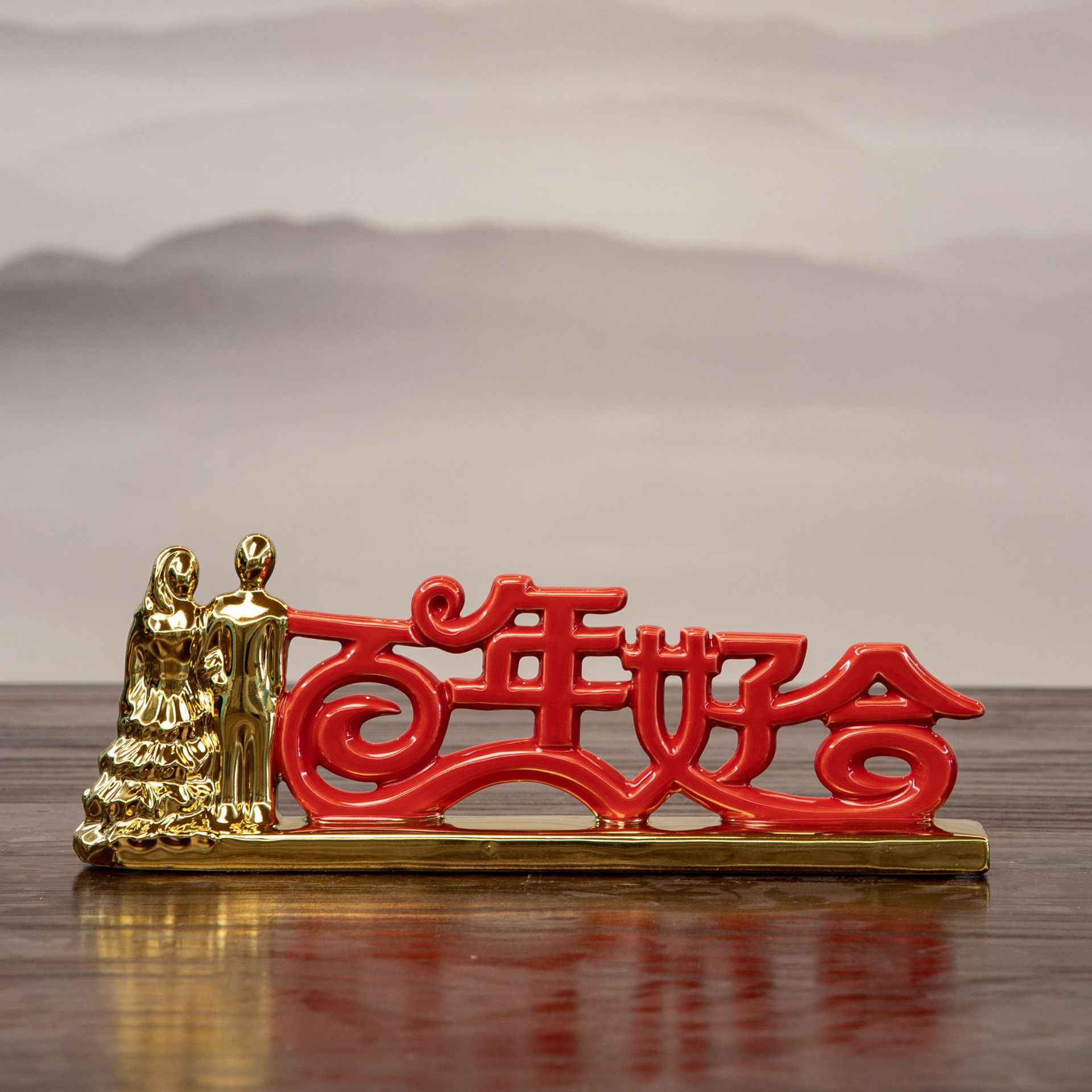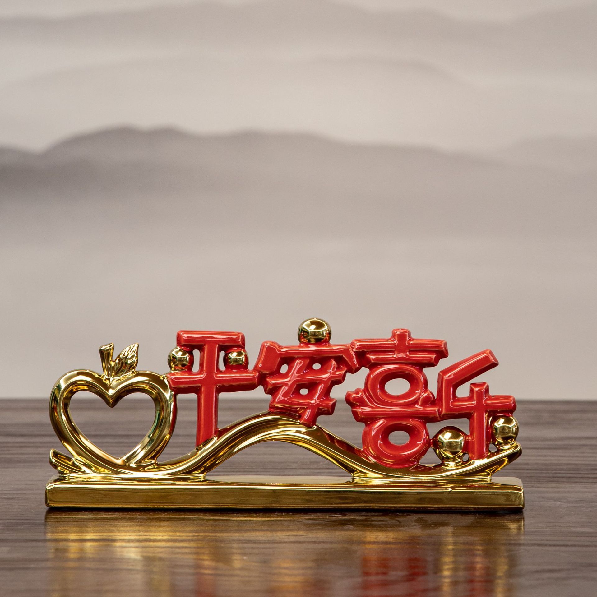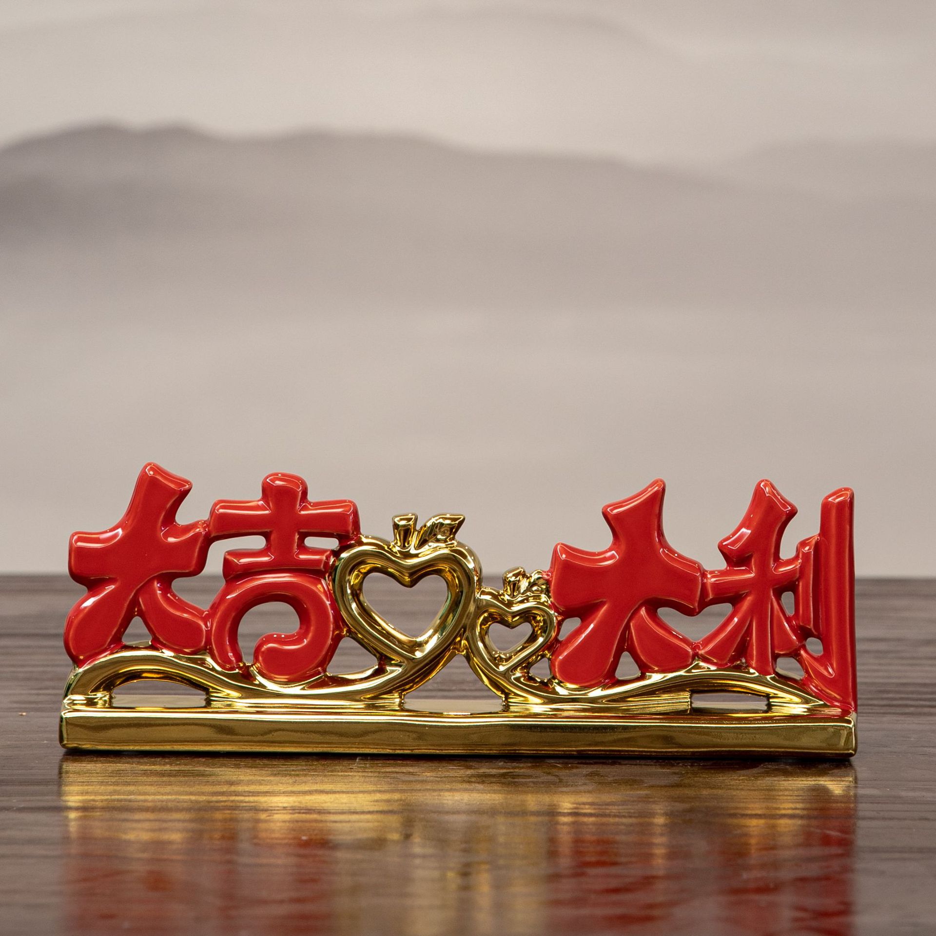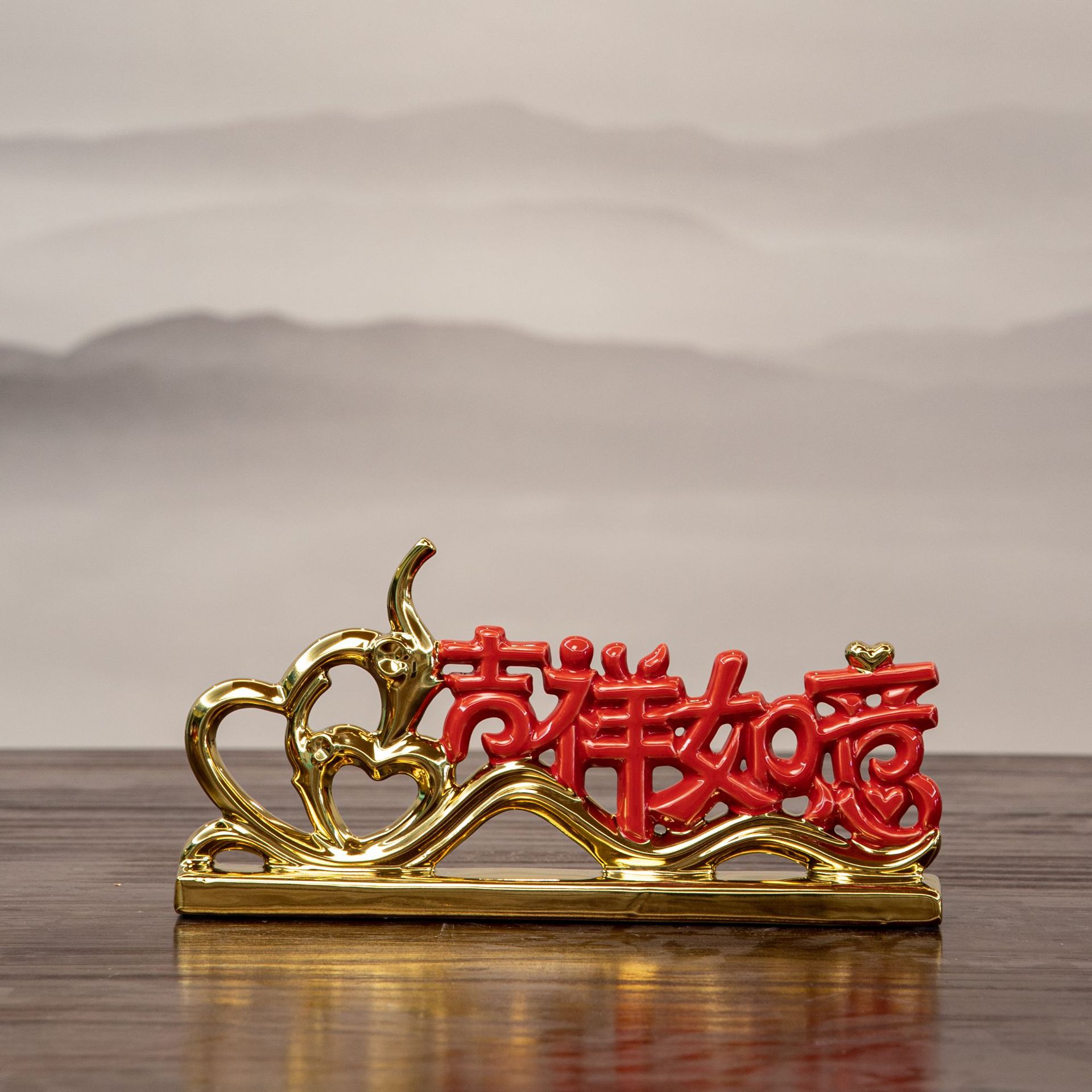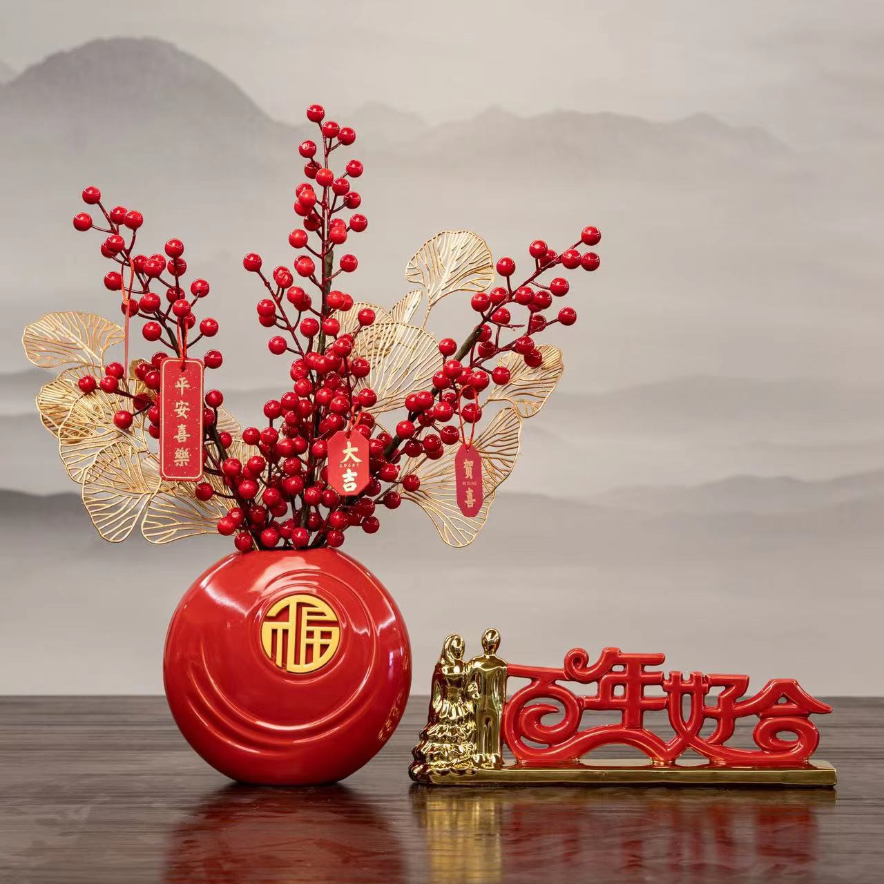 peace joy + vase + chinese hawthorn, good luck + vase + red