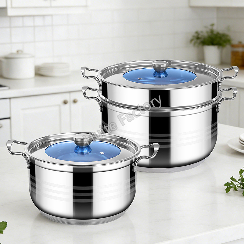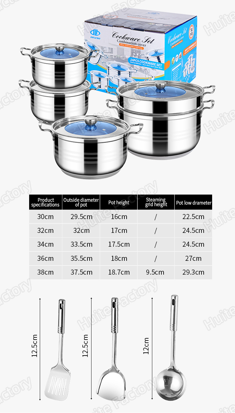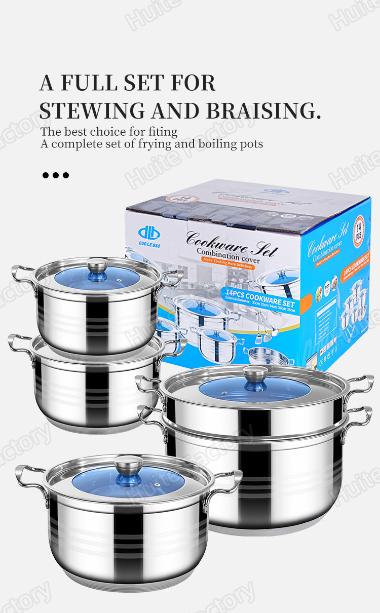 14-piece set of heavy-gauge steel-handle stock pots (with matching lids)