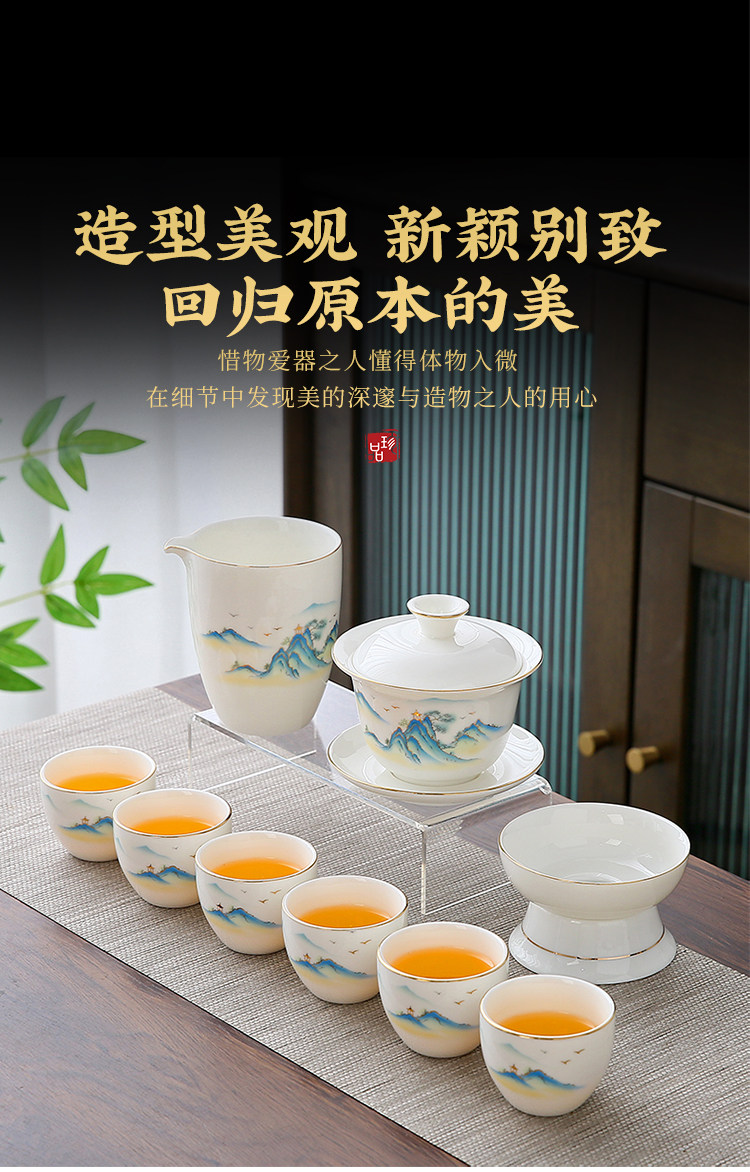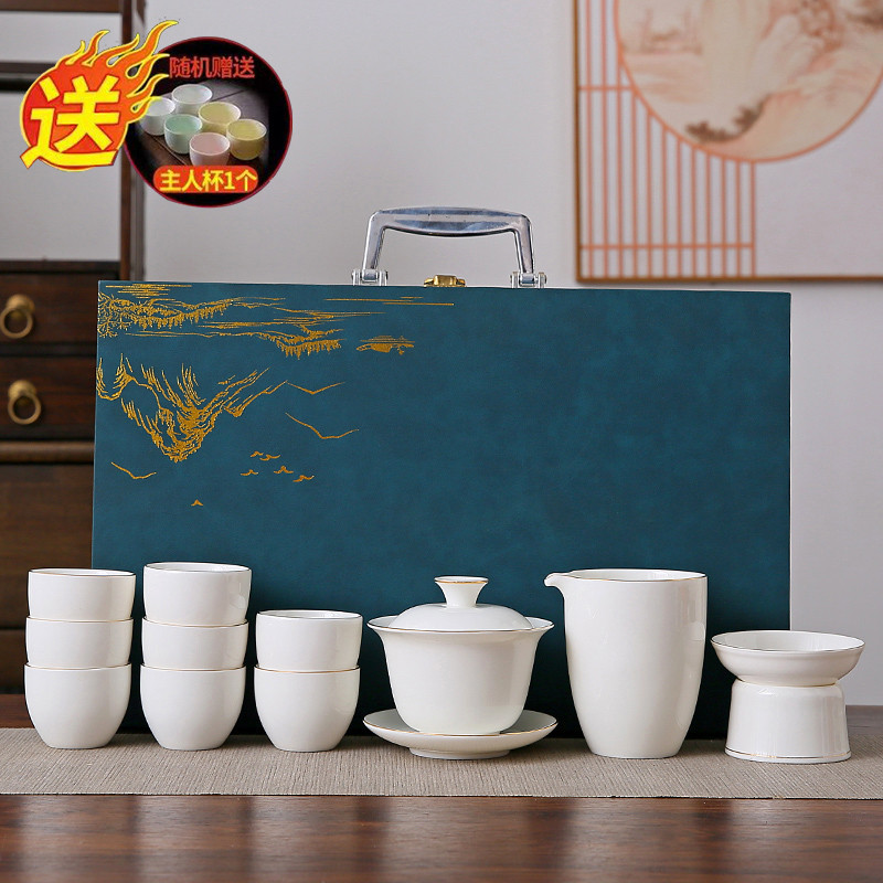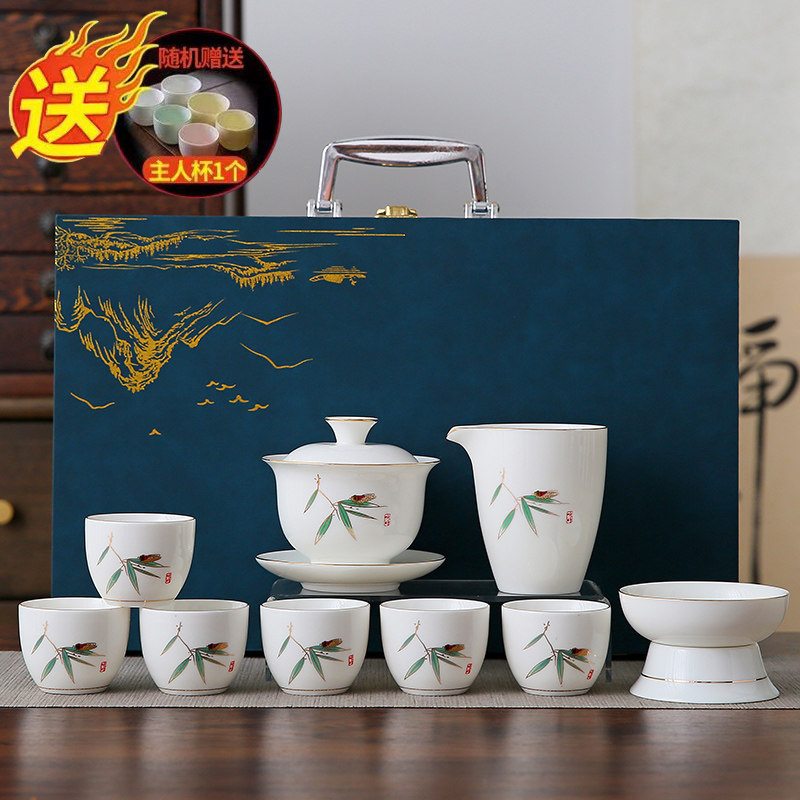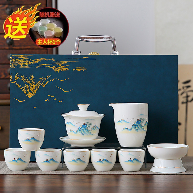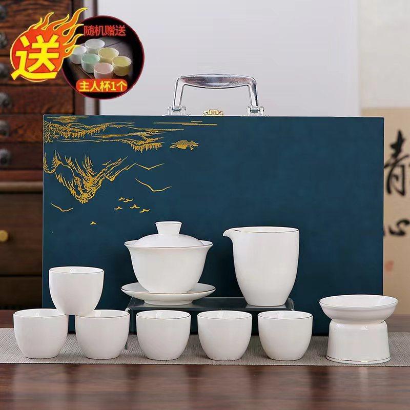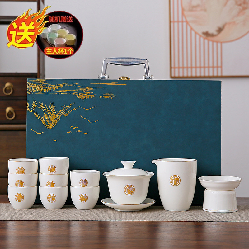 white jade 10-piece set (the land is picturesque) gold (gift box)