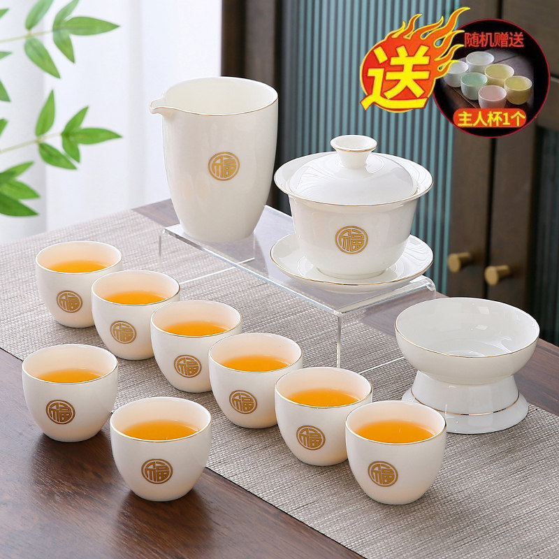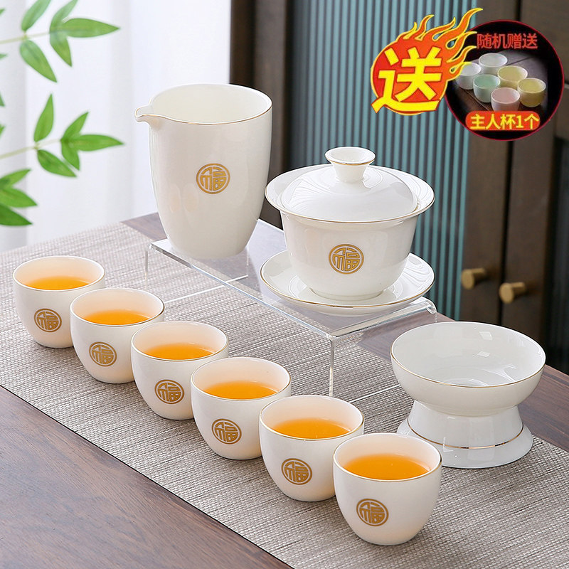 white jade 12-piece set (jinfu) gold (gift box)