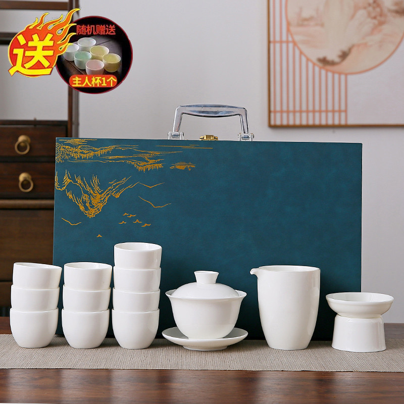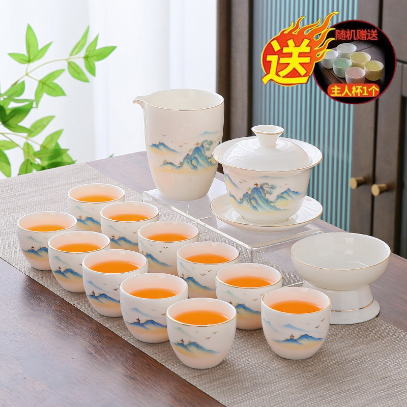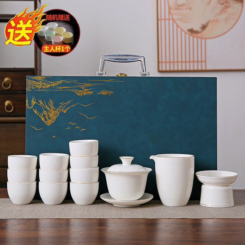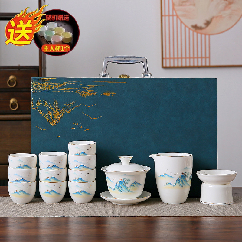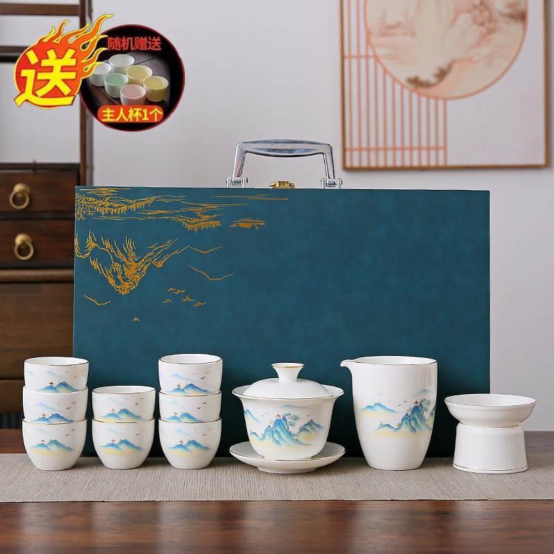 white jade 14-piece set (the land is picturesque) gold (gift box)
